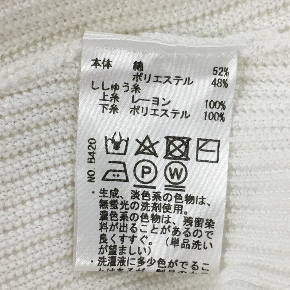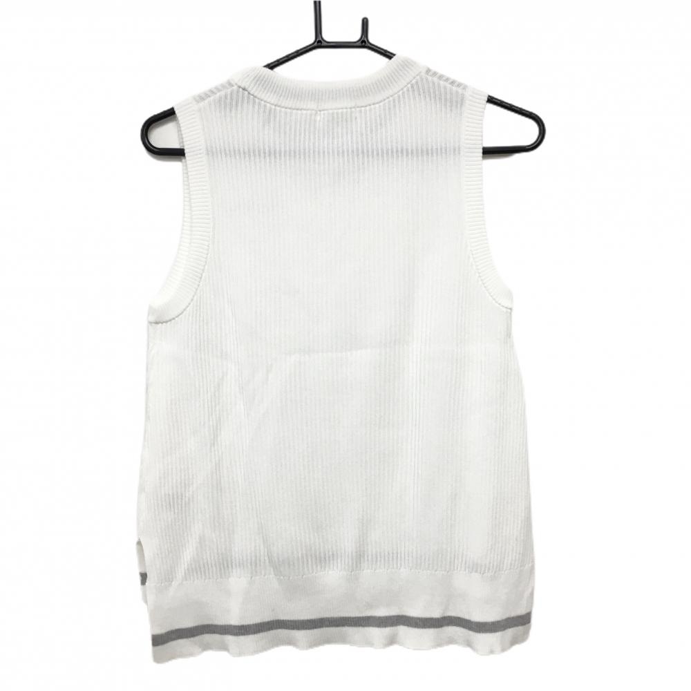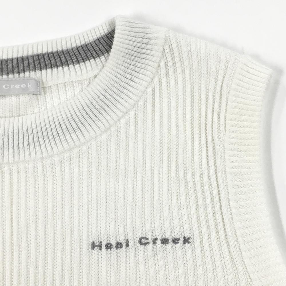【美品】ヒールクリーク ニットベスト 白×ライトグレー ロゴ刺しゅう 裾ライン レディース 40(M) ゴルフウェア Heal Creek