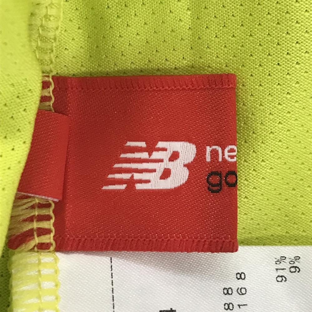 【超美品】ニューバランスゴルフ 半袖ハイネックシャツ グリーンイエロー 胸上ロゴ レディース 2(L) ゴルフウェア New Balance