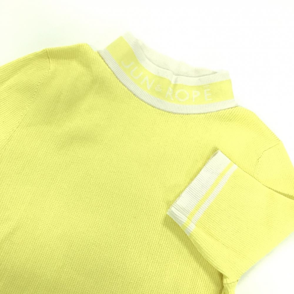 【超美品】ジュンアンドロペ 半袖ハイネックセーター イエロー×白 ネックロゴ レディース S ゴルフウェア JUN&ROPE