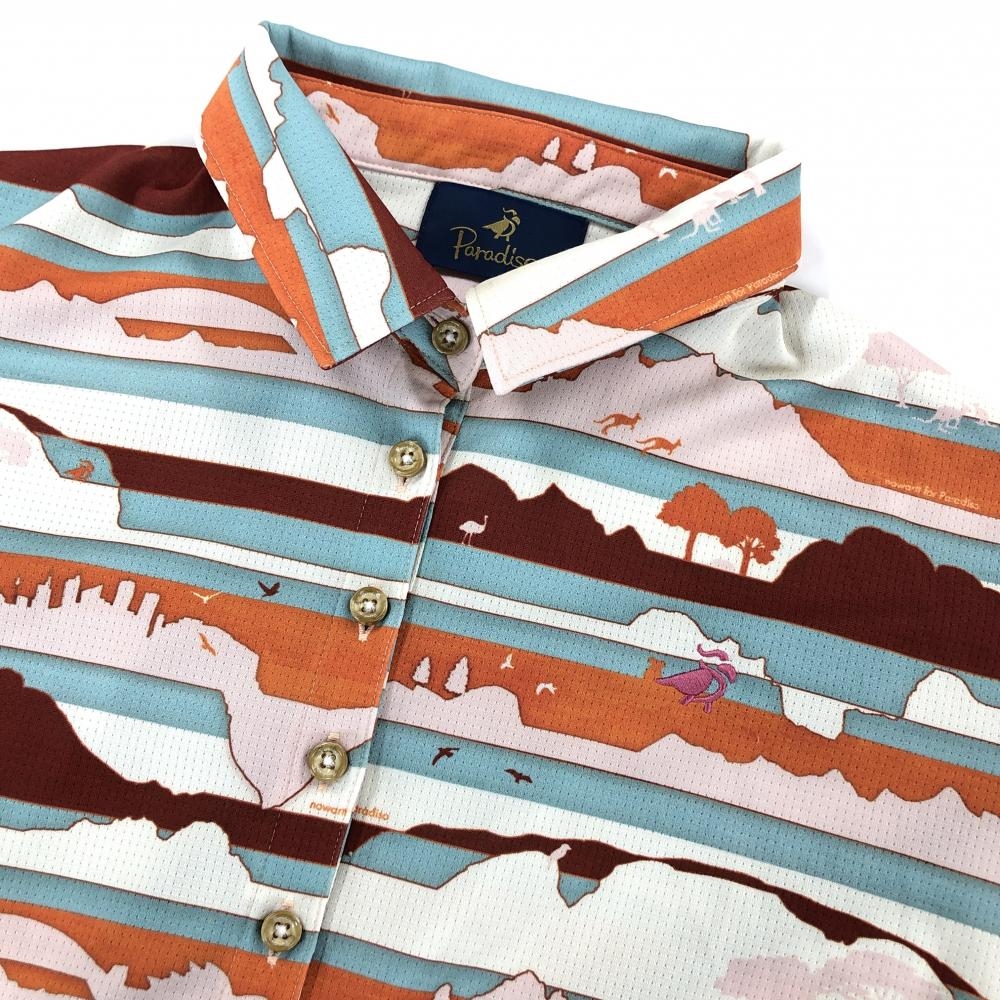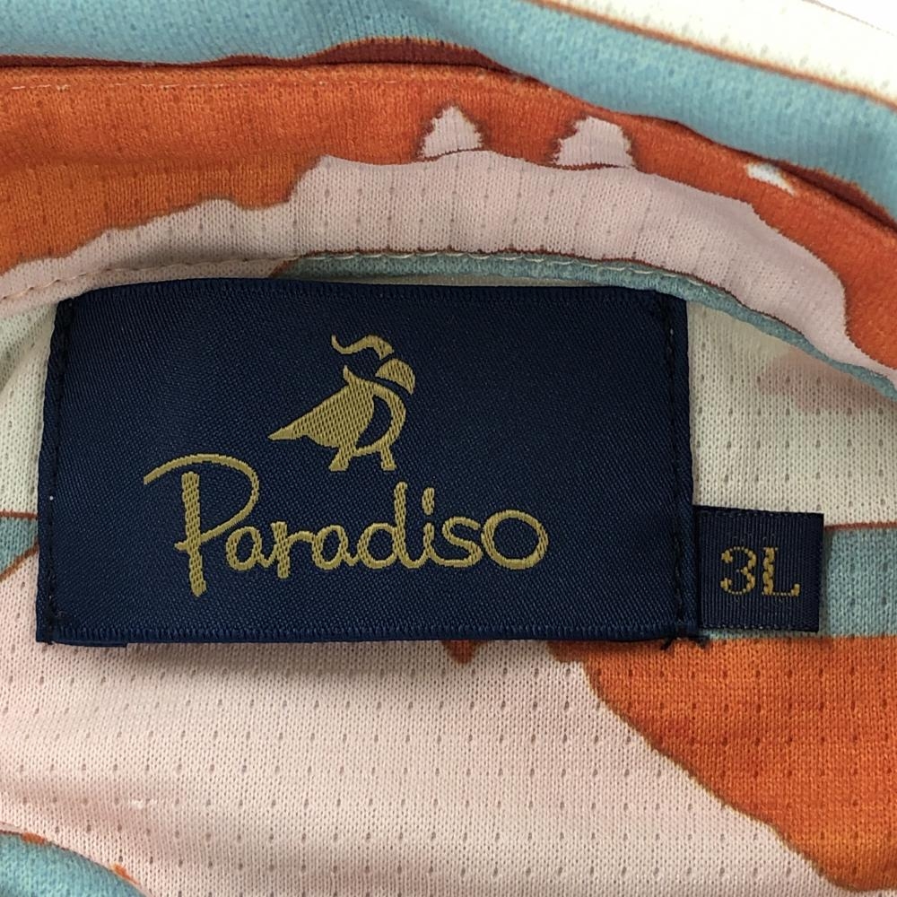 パラディーゾ 半袖ポロワンピース 白×オレンジ ボーダー調 ウエスト調節紐 レディース 3L ゴルフウェア 大きいサイズ Paradiso