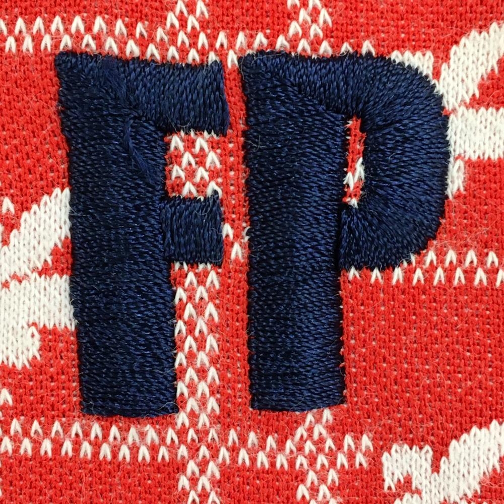 【美品】フェアリーパウダー 半袖ポロシャツ レッド×白 総柄 ロゴ刺しゅう ハーフジップ メンズ XL ゴルフウェア FAIRY POWDER