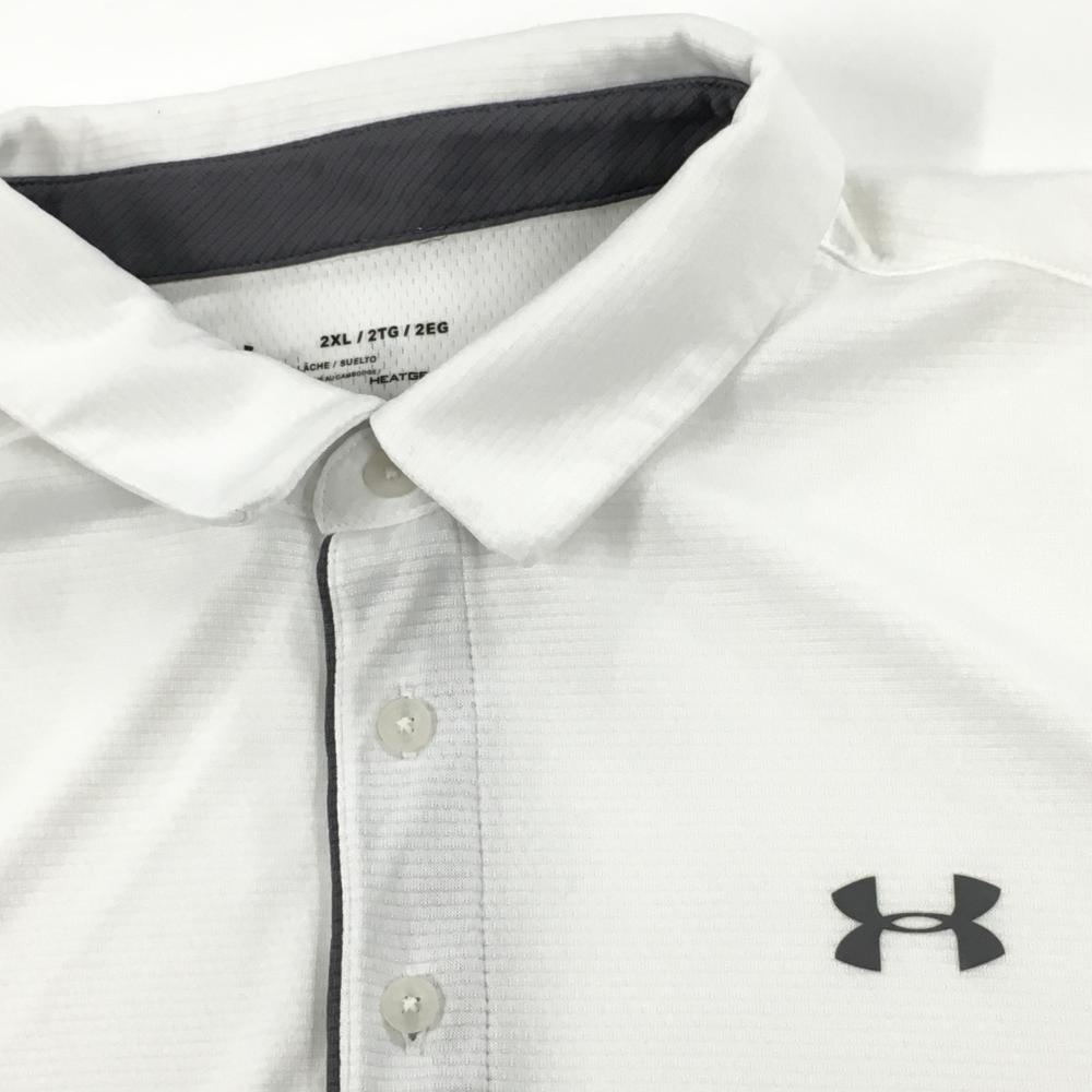 アンダーアーマー 半袖ポロシャツ 白 ロゴダークグレー メンズ 2XL/2TG/2XG ゴルフウェア 大きいサイズ UNDER ARMOUR