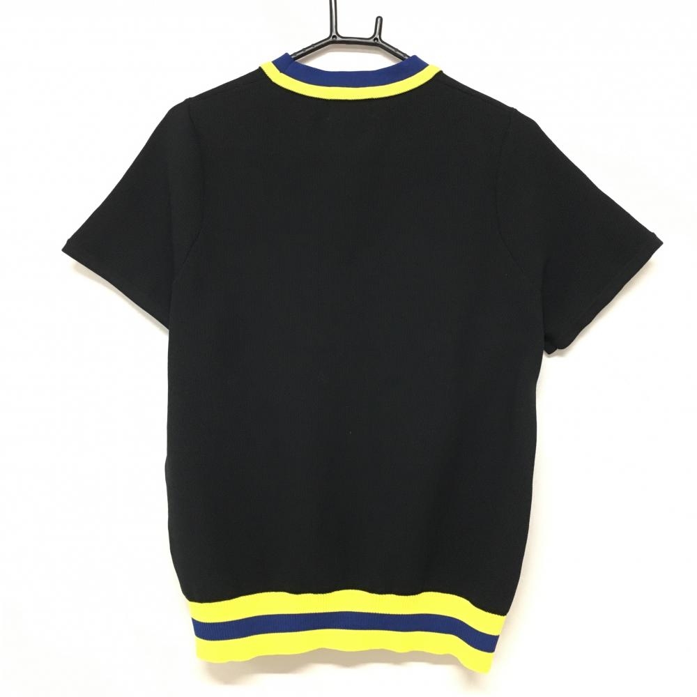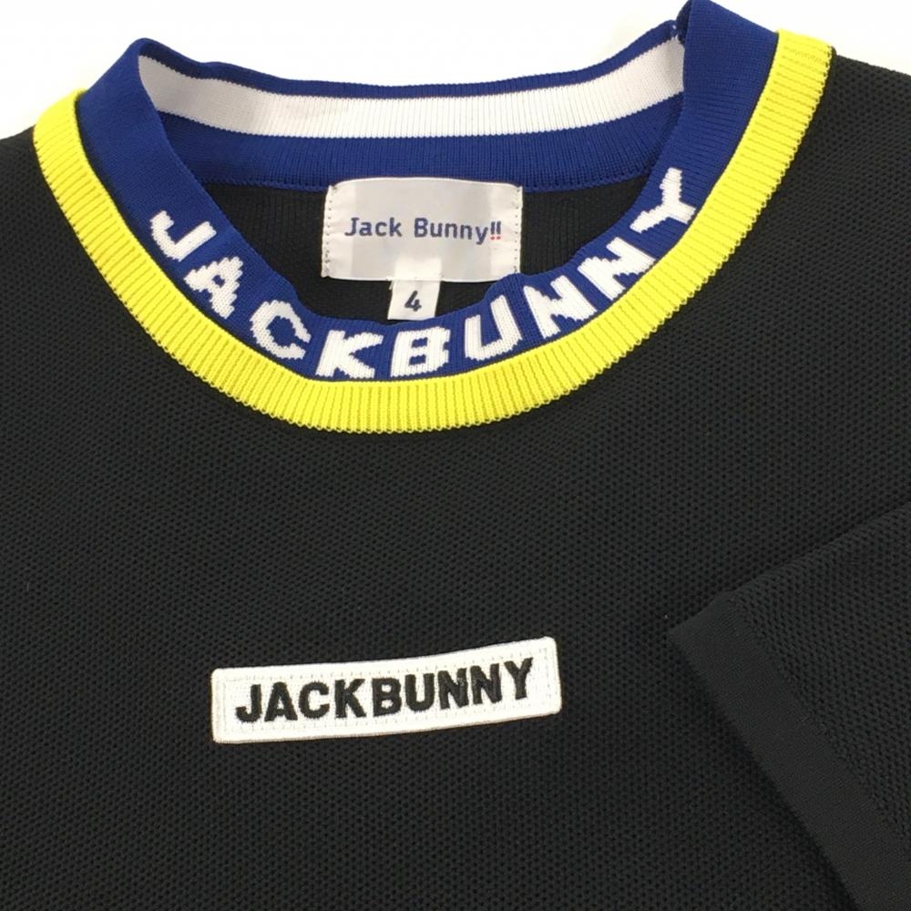 【美品】ジャックバニー 半袖セーター 黒×ブルー ネックロゴ ニット メンズ 4(M) ゴルフウェア Jack Bunny
