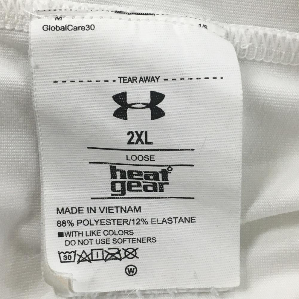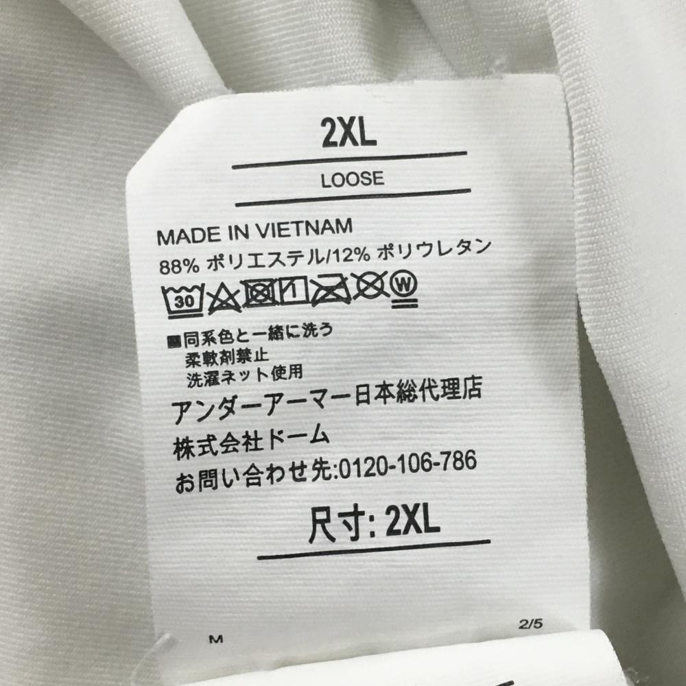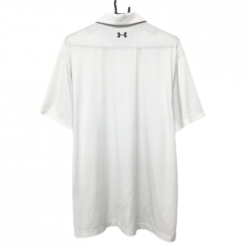 【美品】アンダーアーマー 半袖ポロシャツ 白 ロゴダークグレー 胸元ロゴ メンズ 2XL/2TG/2XG ゴルフウェア 大きいサイズ UNDER ARMOUR