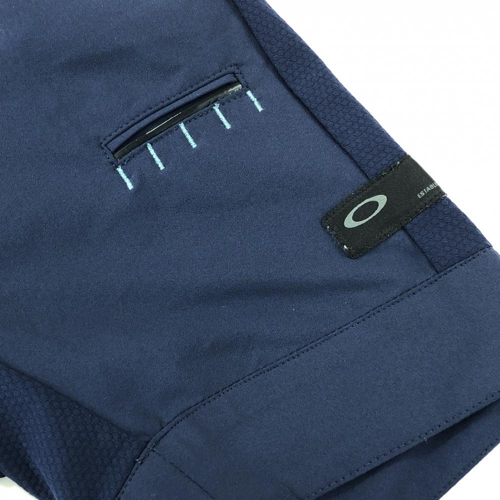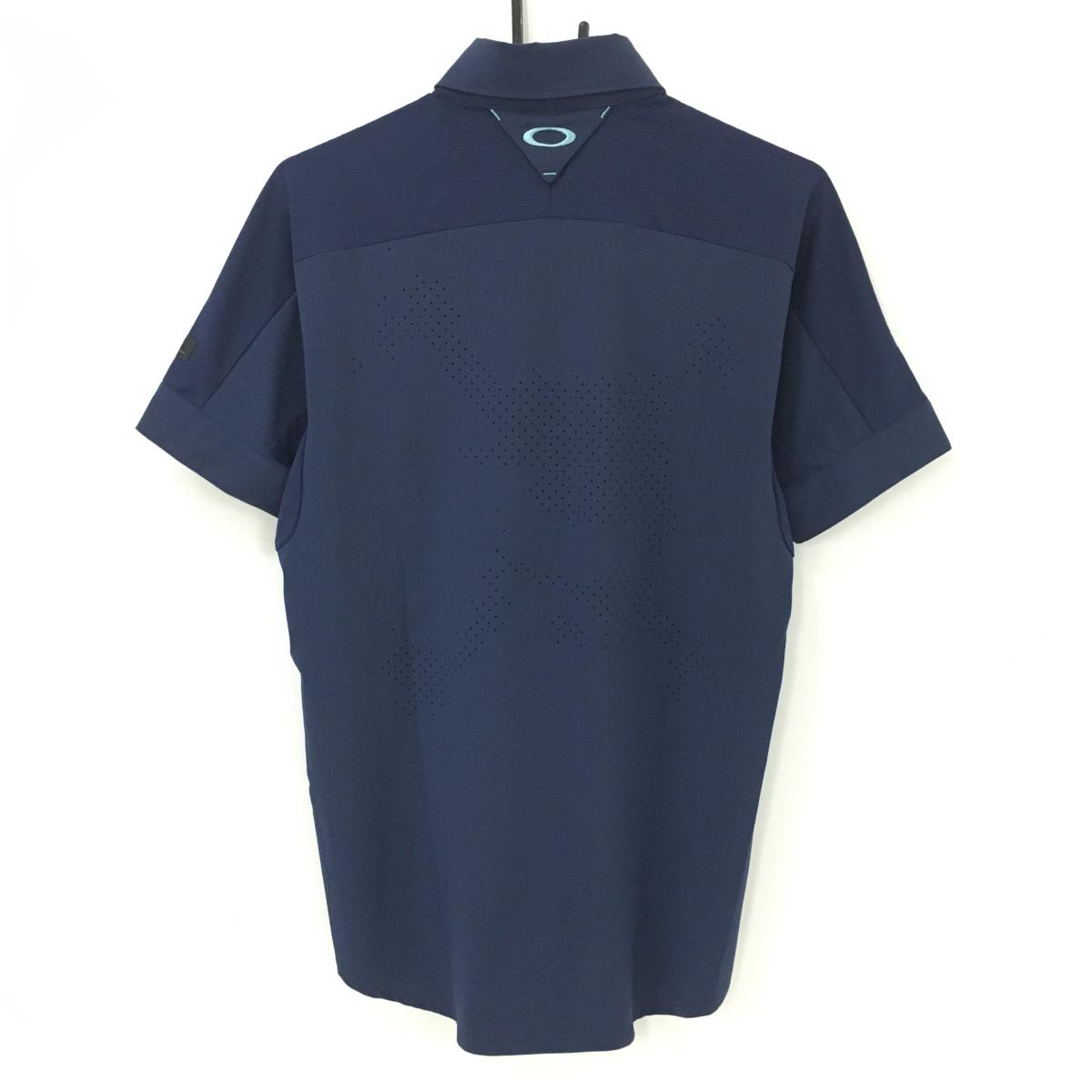 オークリー 半袖シャツ ネイビー×グレー 裾メッシュ調 ロゴ刺しゅう ティー装着可 メンズ M ゴルフウェア Oakley