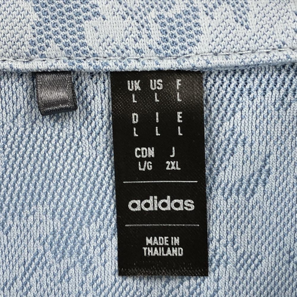 【超美品】アディダス×マルボン 半袖ポロシャツ ライトブルー 総柄 胸刺しゅう メンズ 2XL ゴルフウェア adidas