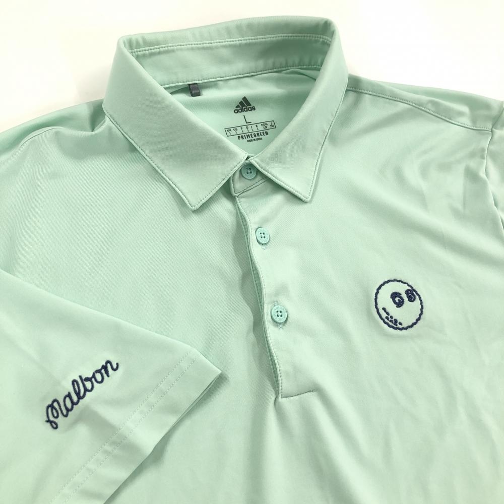 【美品】アディダス×マルボン 半袖ポロシャツ ライトグリーン 袖ロゴ メンズ 2XO ゴルフウェア adidas