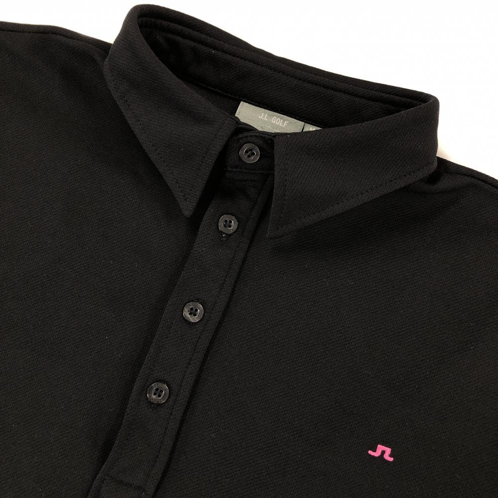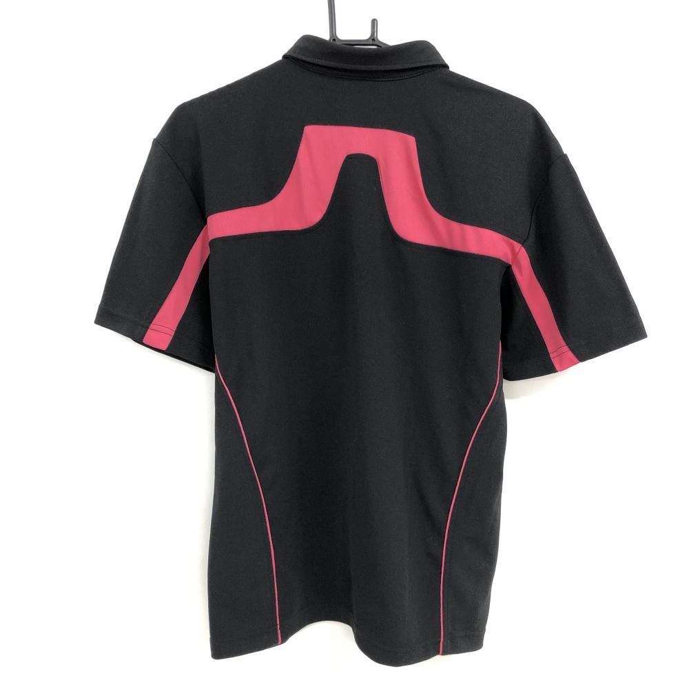 【美品】ジェイリンドバーグ 半袖ポロシャツ 黒×ピンク 背面ロゴ メンズ M ゴルフウェア J.LINDEBERG