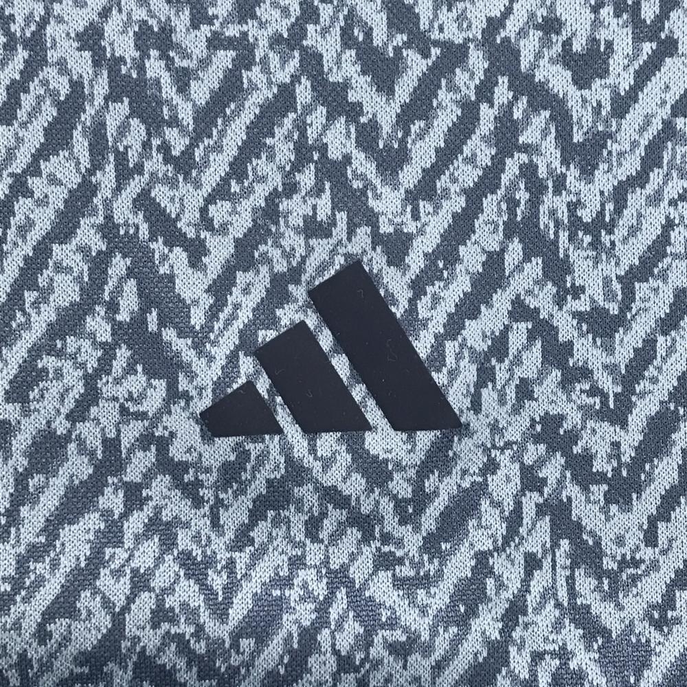 【美品】アディダス×マルボン 半袖ハイネックシャツ ネイビー 総柄 メンズ 2XL ゴルフウェア adidas