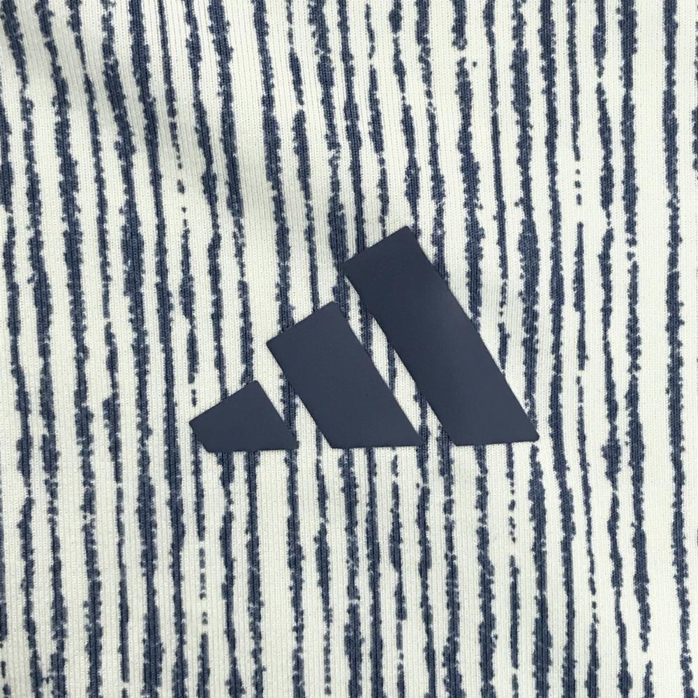 【超美品】アディダス×マルボン 半袖ポロシャツ 白×ネイビー スタンドカラー 総柄 メンズ 2XL ゴルフウェア adidas