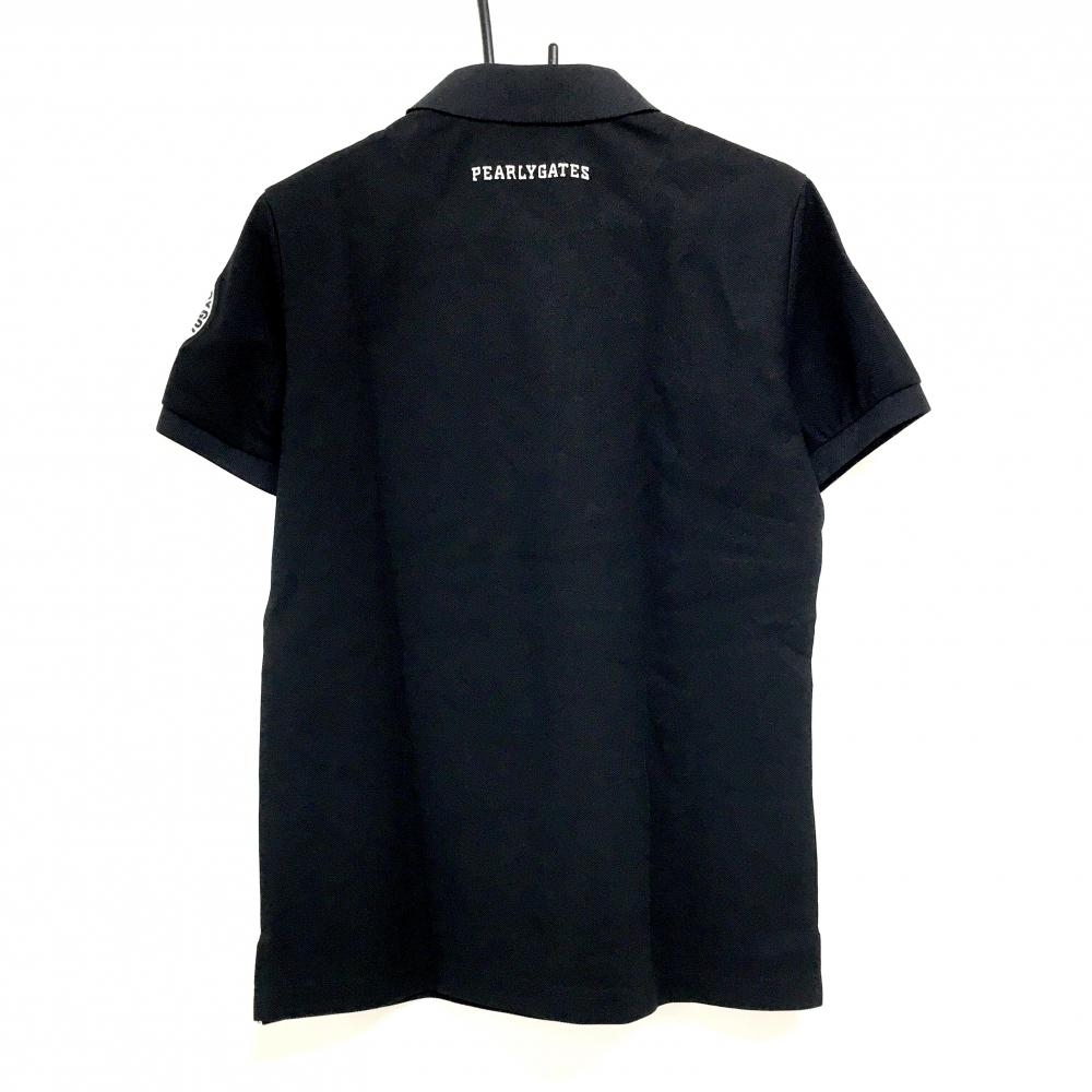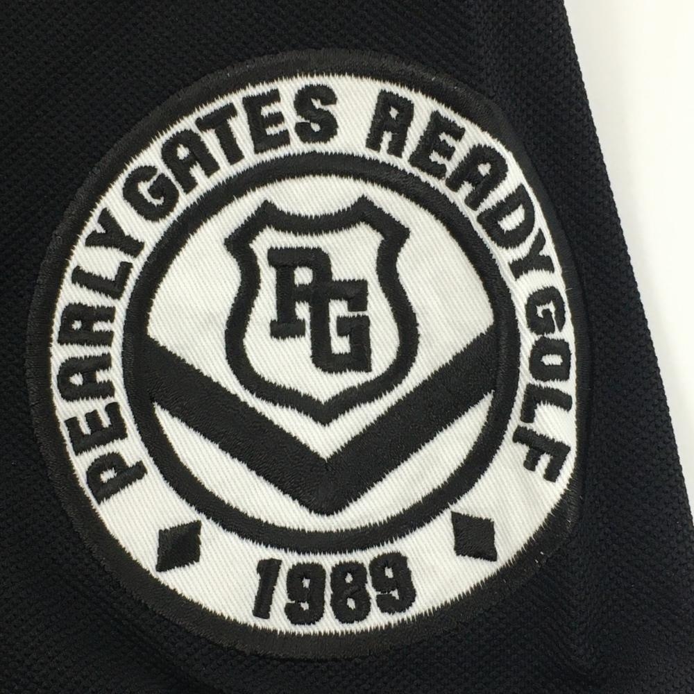 【美品】パーリーゲイツ 半袖ポロシャツ 黒×白 フェルトワッペンカモフラ ニコちゃん スマイル メンズ 4(M) ゴルフウェア PEARLY GATES