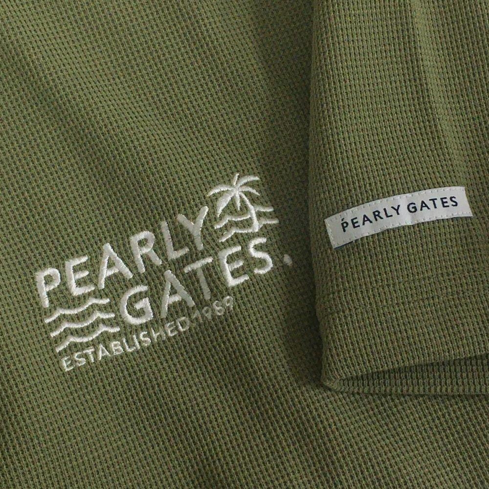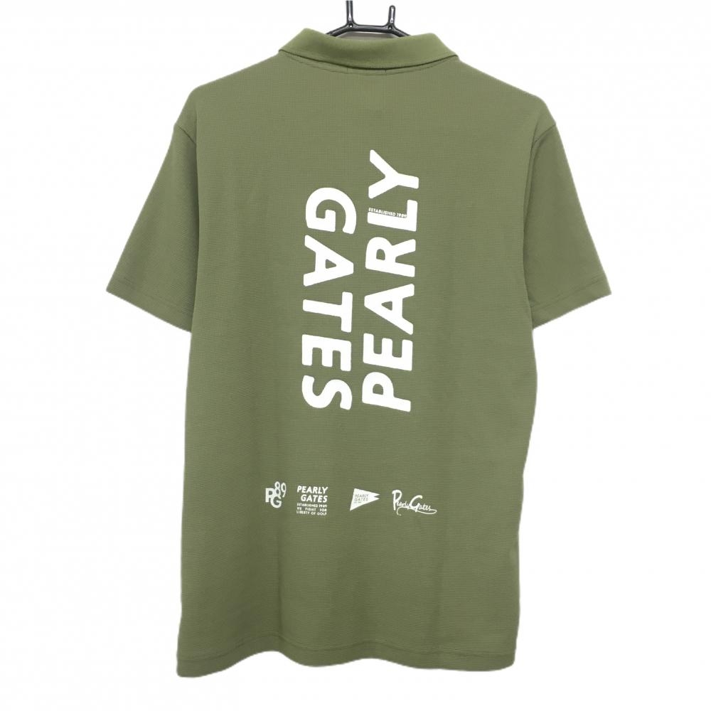 【新品】パーリーゲイツ 半袖ポロシャツ グリーン×白 背面ビッグロゴ 日本製 メンズ 5(L) ゴルフウェア PEARLY GATES
