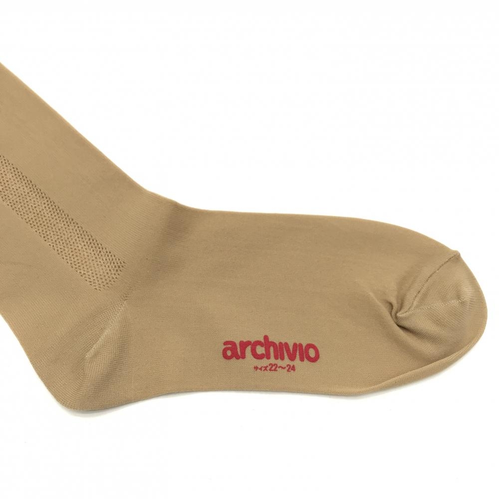 【未使用品】アルチビオ ニーハイソックス ベージュ系 ロゴ刺しゅう レディース 22-24 ゴルフウェア archivio