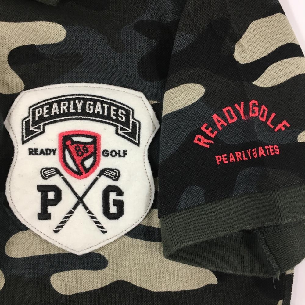 パーリーゲイツ 半袖ポロシャツ カーキ×ベージュ カモフラ 迷彩 メンズ 4(M) ゴルフウェア PEARLY GATES