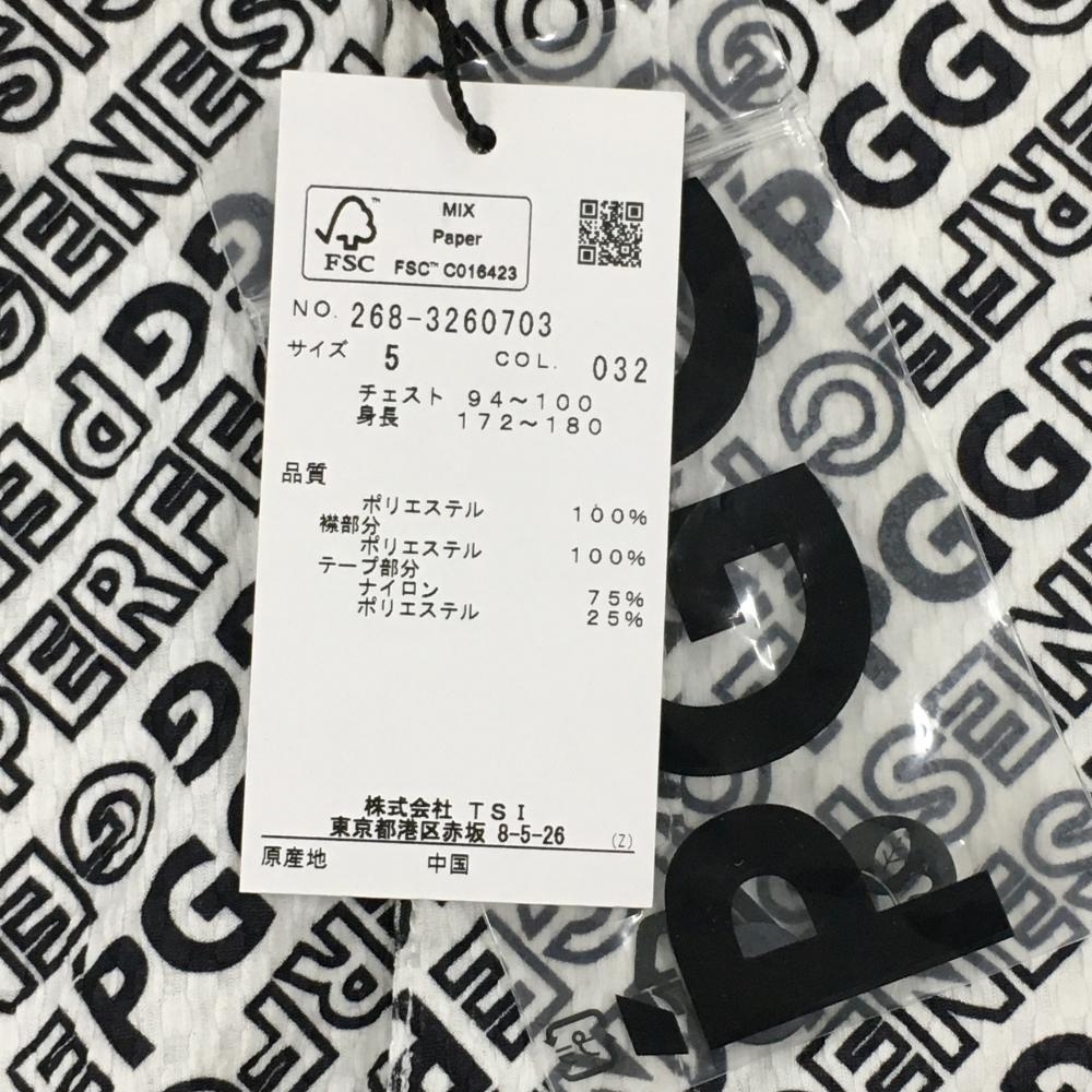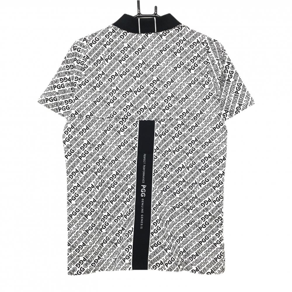 【新品】PGGパーリーゲイツ 半袖ポロシャツ 白×黒 ロゴ総柄 織生地 メンズ 5(L) ゴルフウェア PEARLY GATES