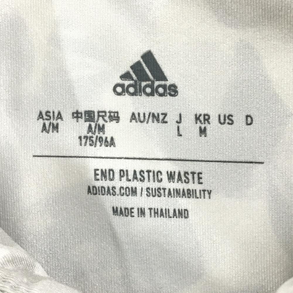 【超美品】アディダス 半袖ポロシャツ グレー 総柄 袖ロゴ メンズ L ゴルフウェア adidas