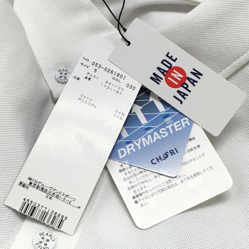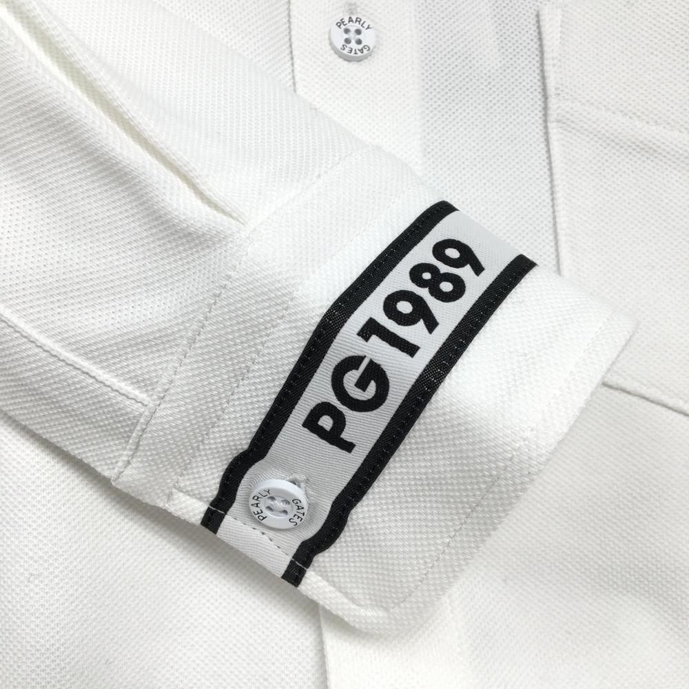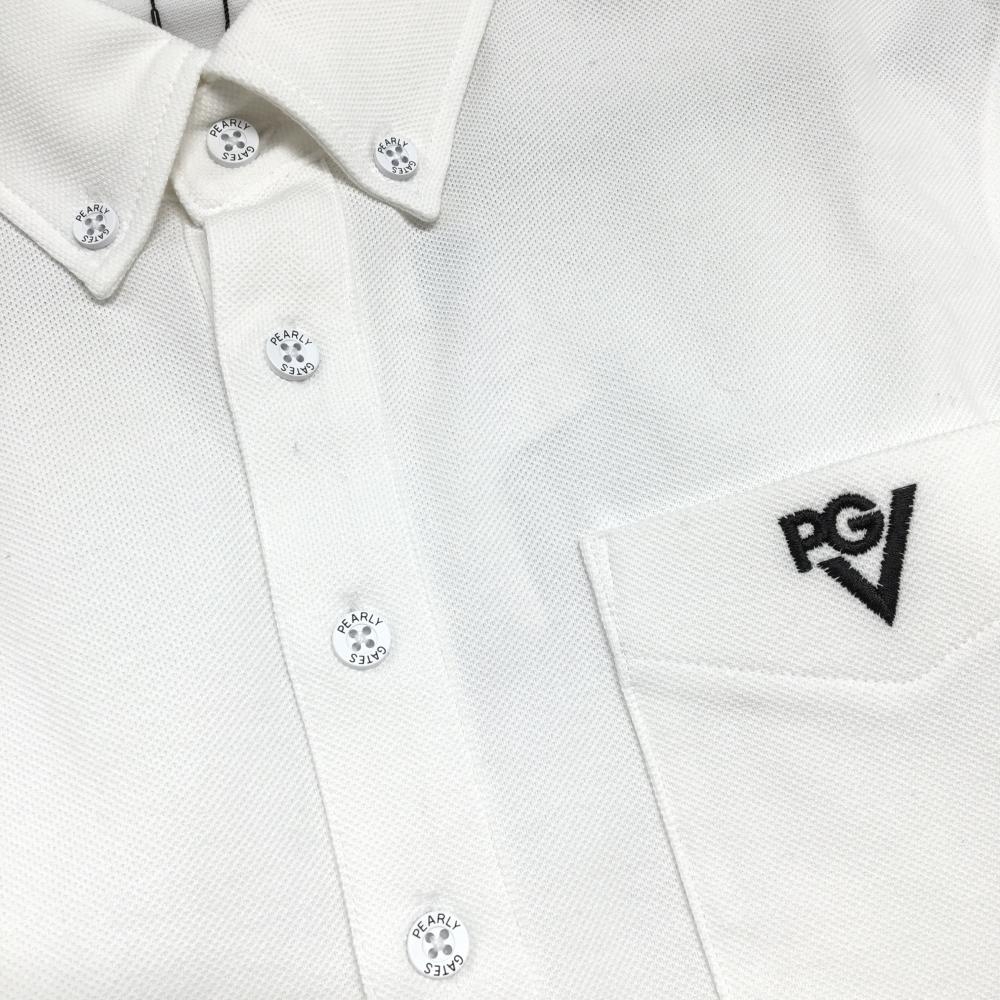 【新品】パーリーゲイツ 長袖ポロシャツ 白×ネイビー 胸ポケット ボタンダウン メンズ 5(L) ゴルフウェア PEARLY GATES