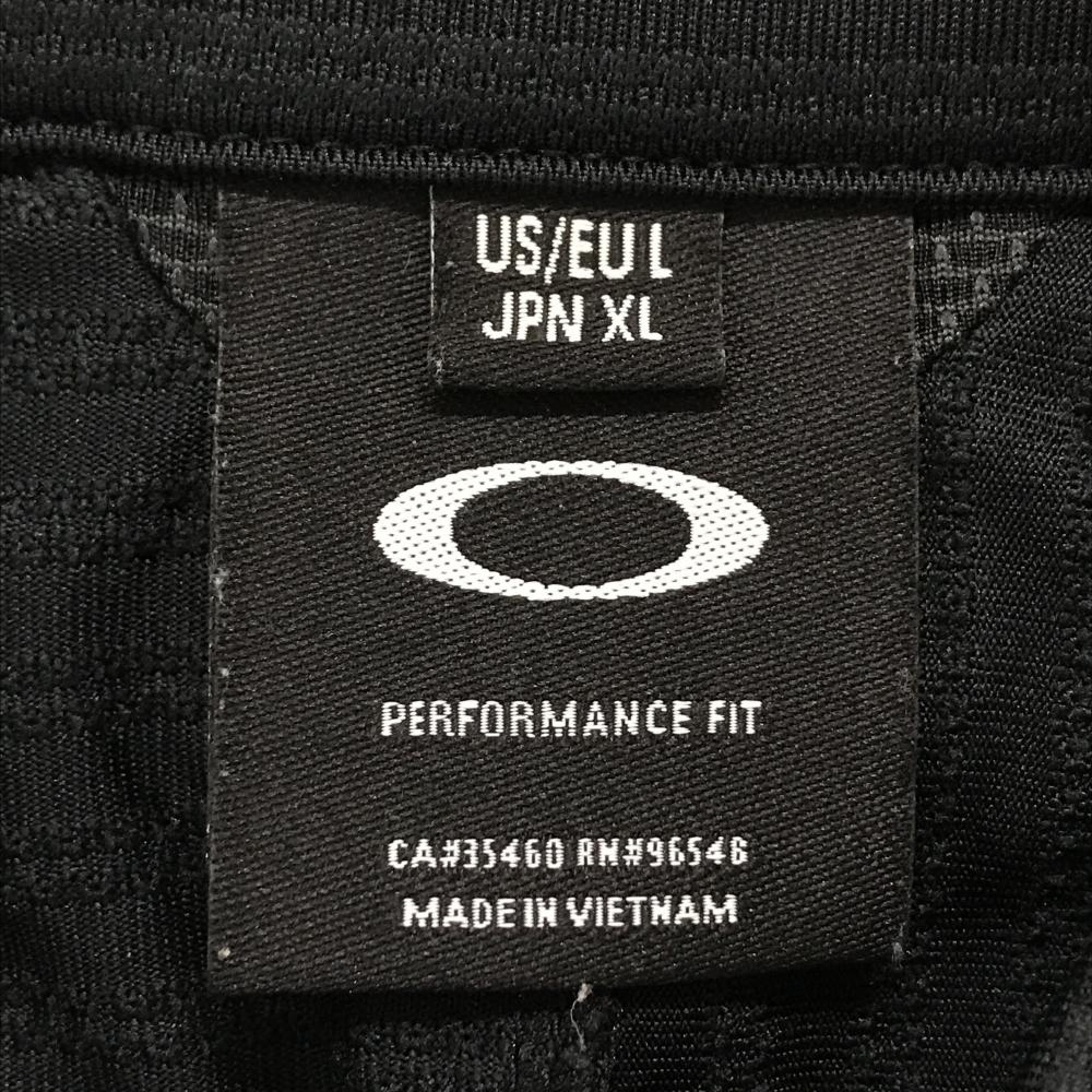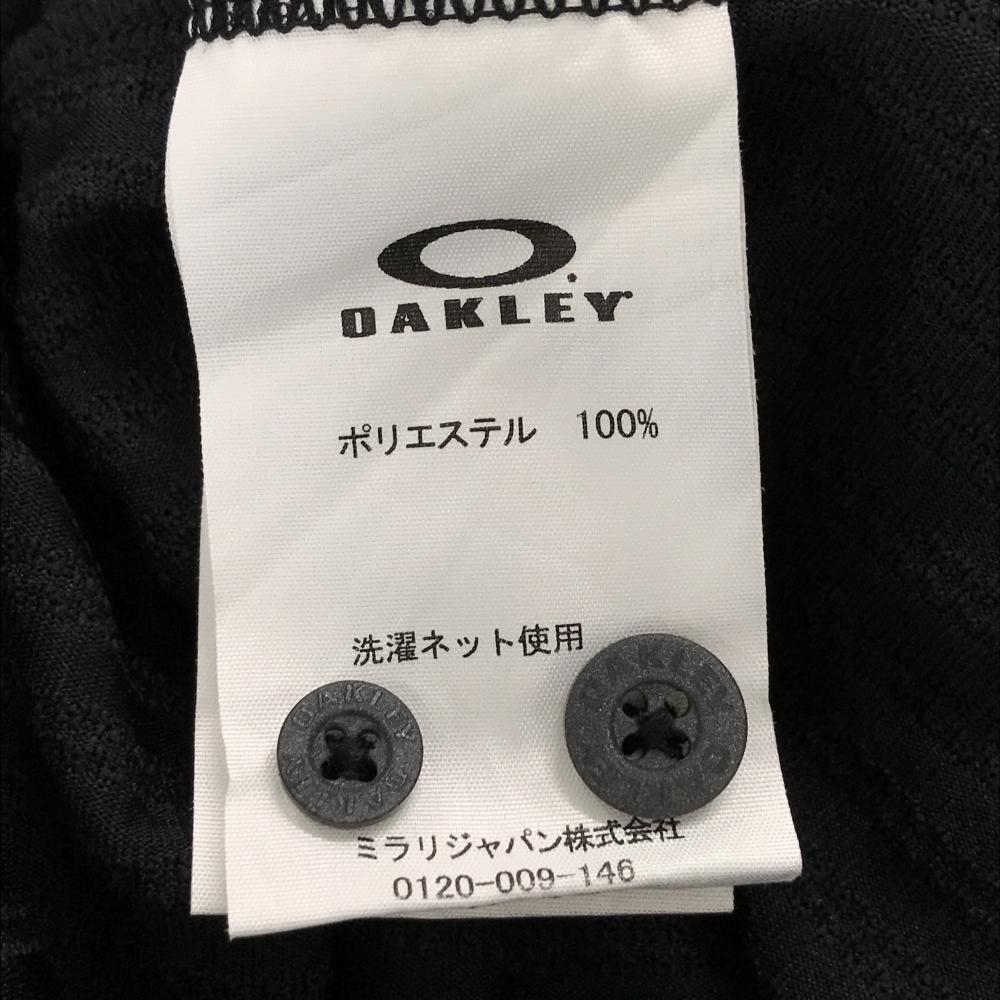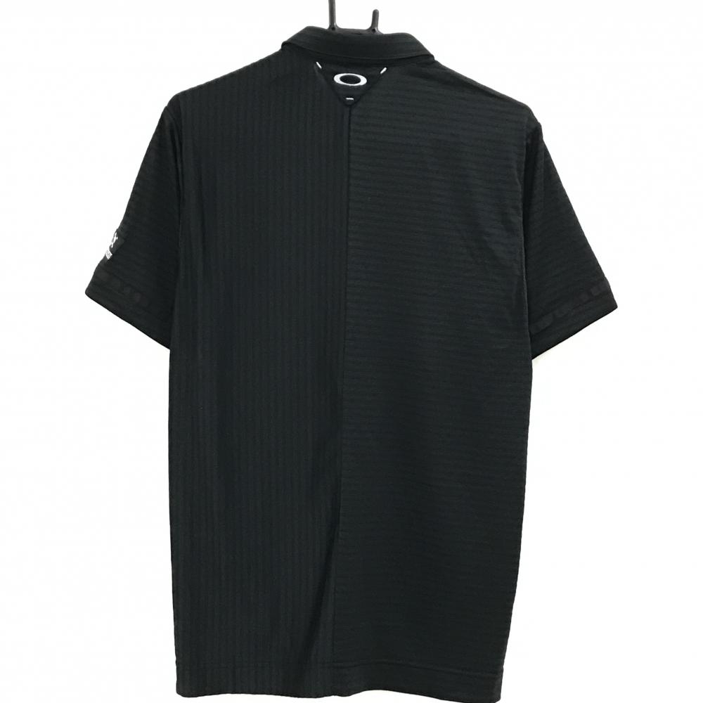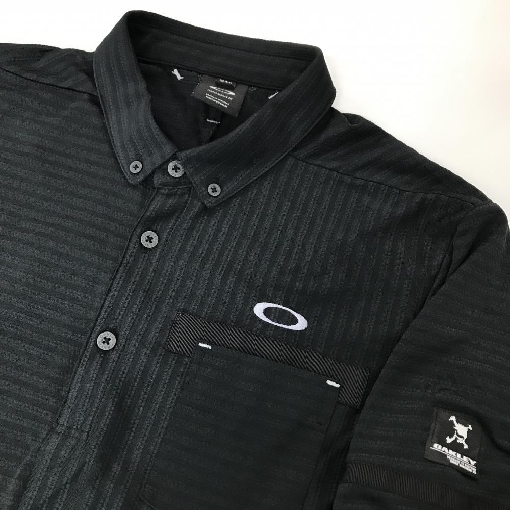 【超美品】オークリー 半袖ポロシャツ ダークグレー×黒 ストライプ ボーダー 胸ポケット ボタンダウン メンズ XL ゴルフウェア Oakley