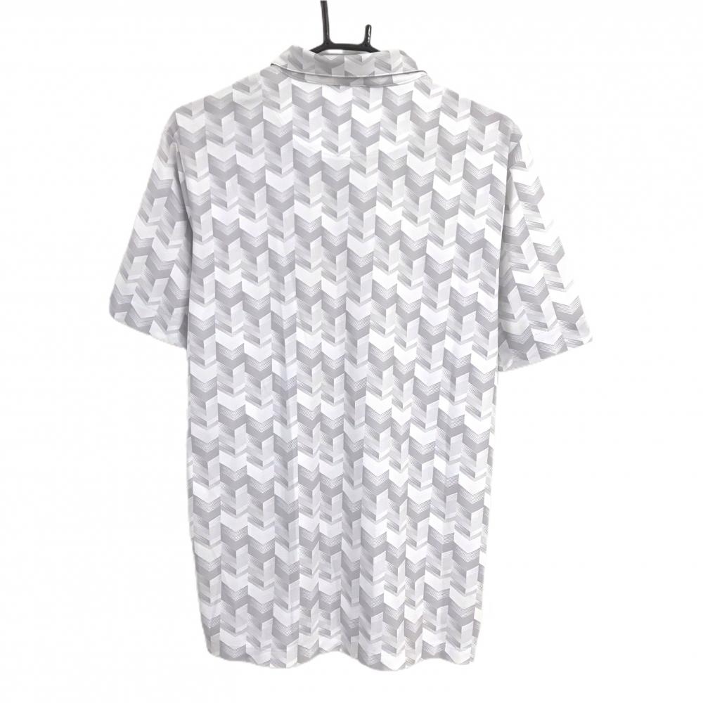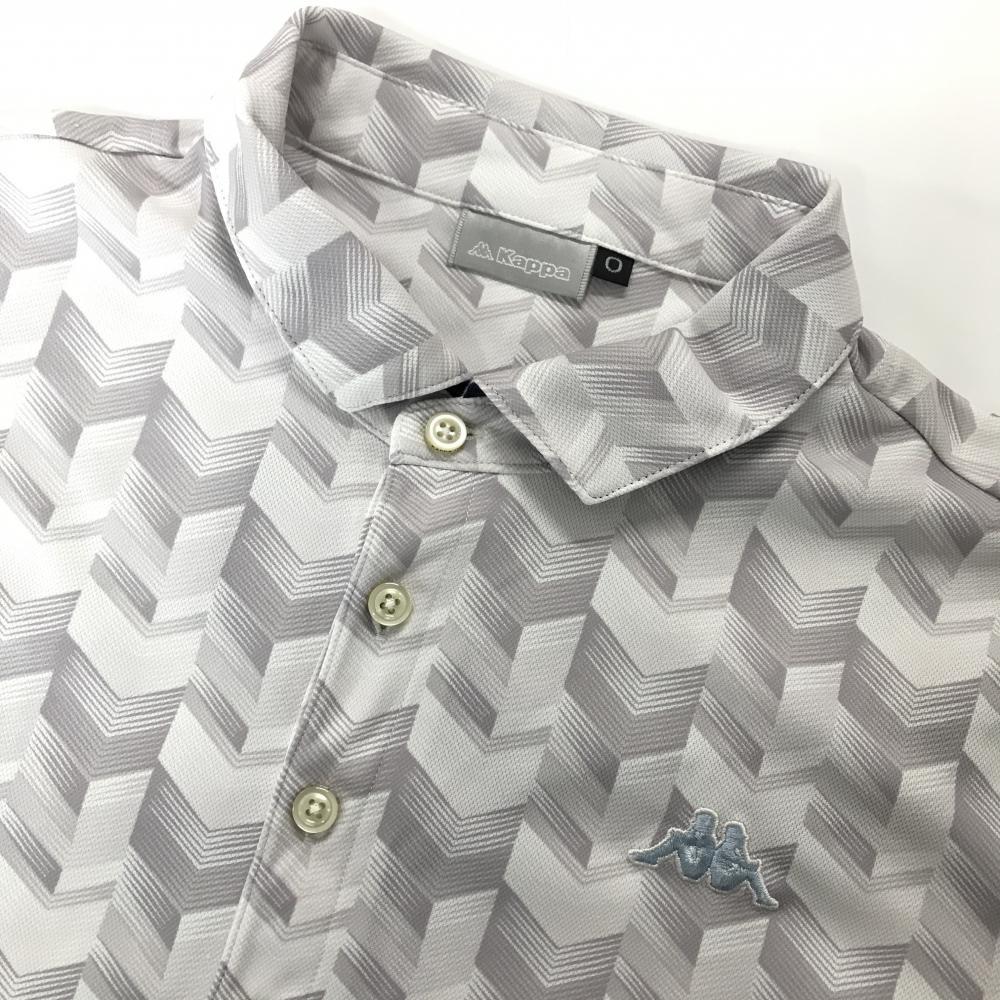 【超美品】カッパ 半袖ポロシャツ 白×ライトグレー ヘリンボーン風 ロゴ刺しゅう メンズ 0(XL) ゴルフウェア Kappa