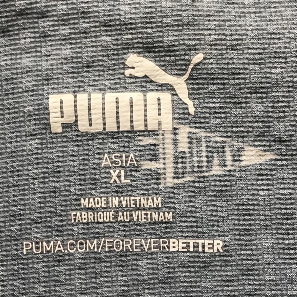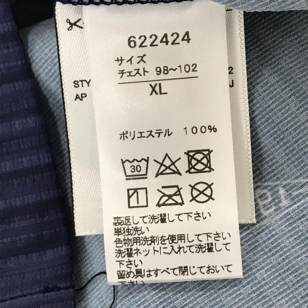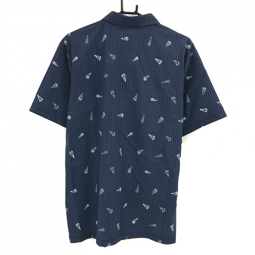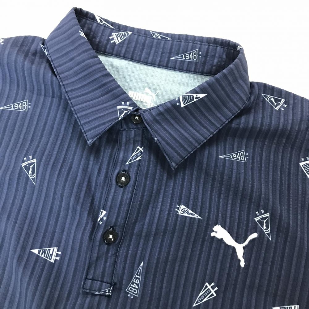 【超美品】プーマ 半袖ポロシャツ ネイビー×白 ペナント柄 ストライプ サッカー生地風 メンズ XL ゴルフウェア PUMA