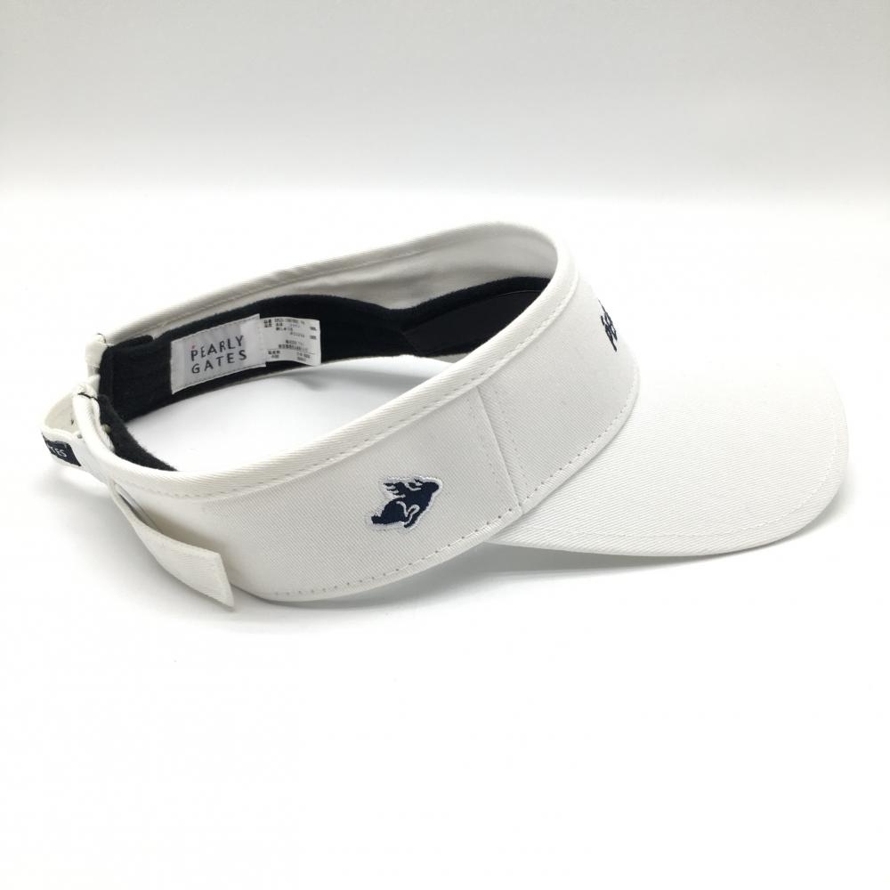 【超美品】パーリーゲイツ サンバイザー 白×ネイビー フライングラビット 汗取りパッド FR ゴルフウェア PEARLY GATES