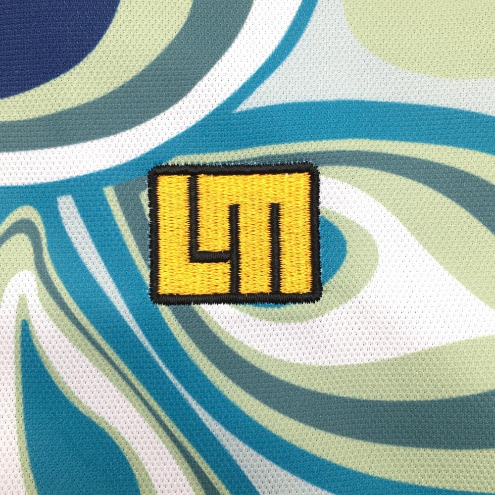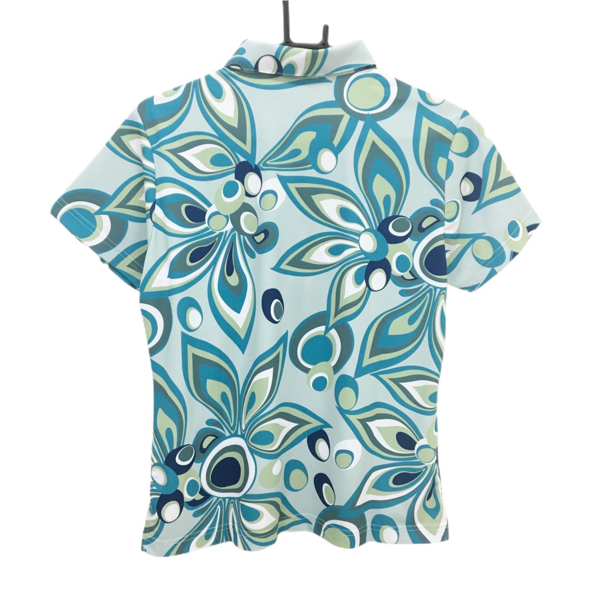 【新品】ラウドマウス 半袖ポロシャツ ライトブルー×ライトグリーン 総柄 ジャガデリック柄 レディース LL ゴルフウェア LOUDMOUTH