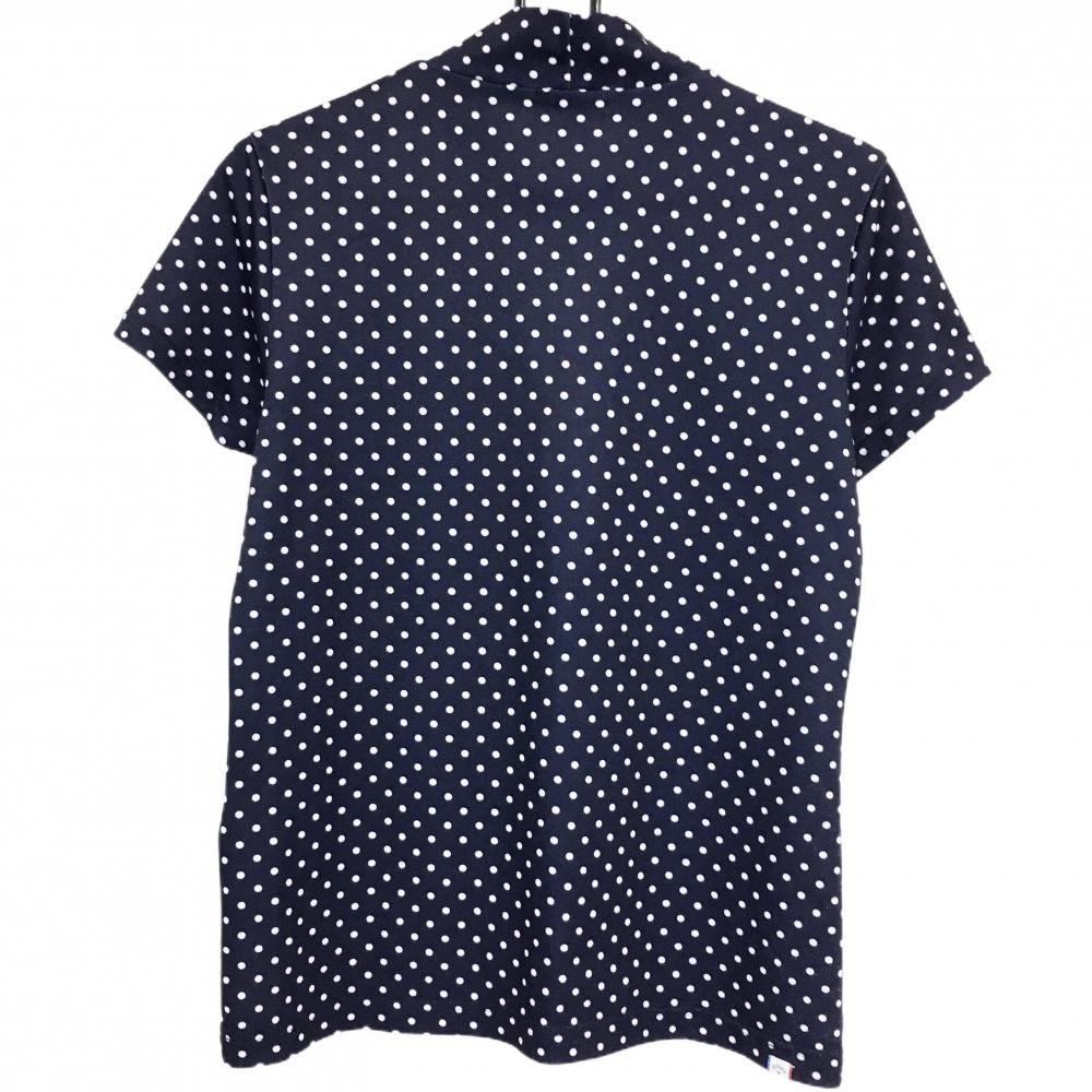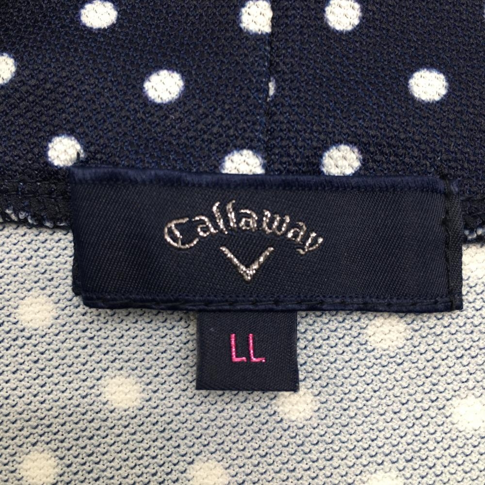 【超美品】キャロウェイ 半袖ハイネックシャツ ネイビー×白 ドット柄 ロゴ刺しゅう レディース LL ゴルフウェア Callaway