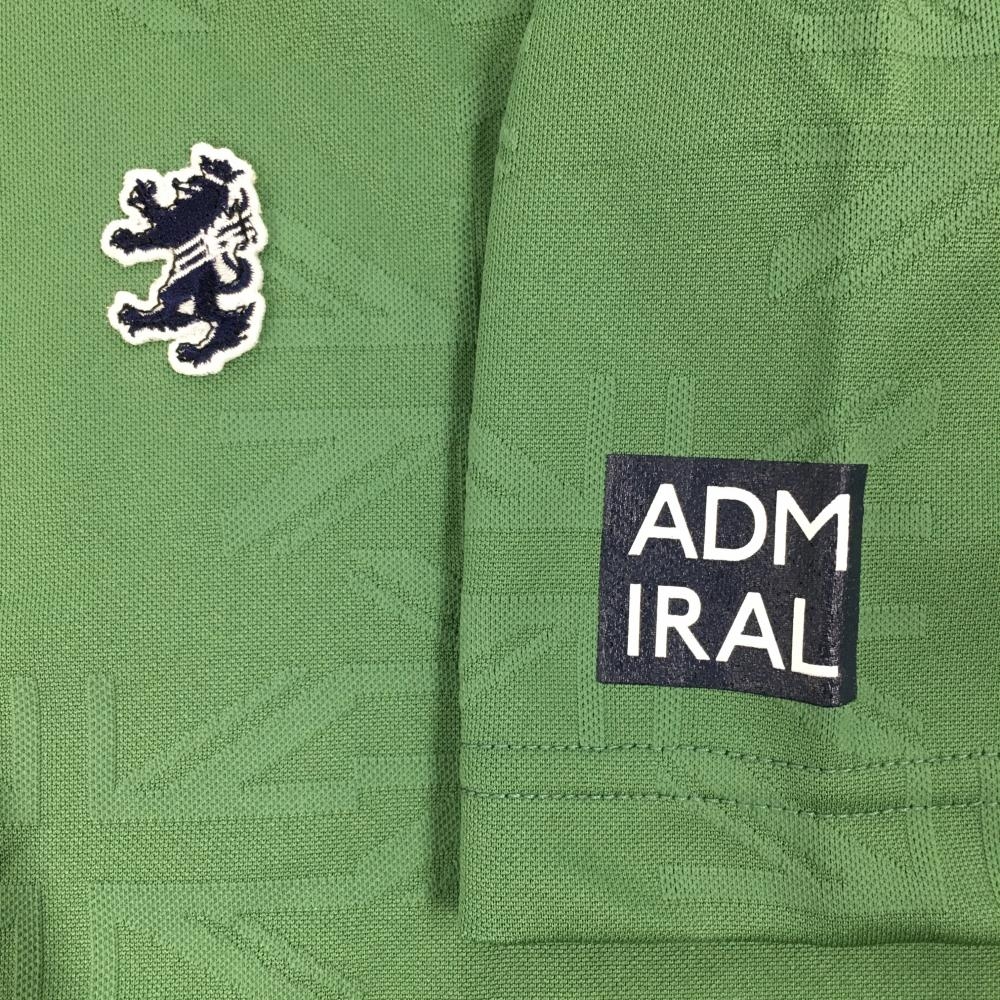 【超美品】アドミラル 半袖ポロシャツ グリーン 総柄地模様 ワッペン メンズ XL ゴルフウェア Admiral