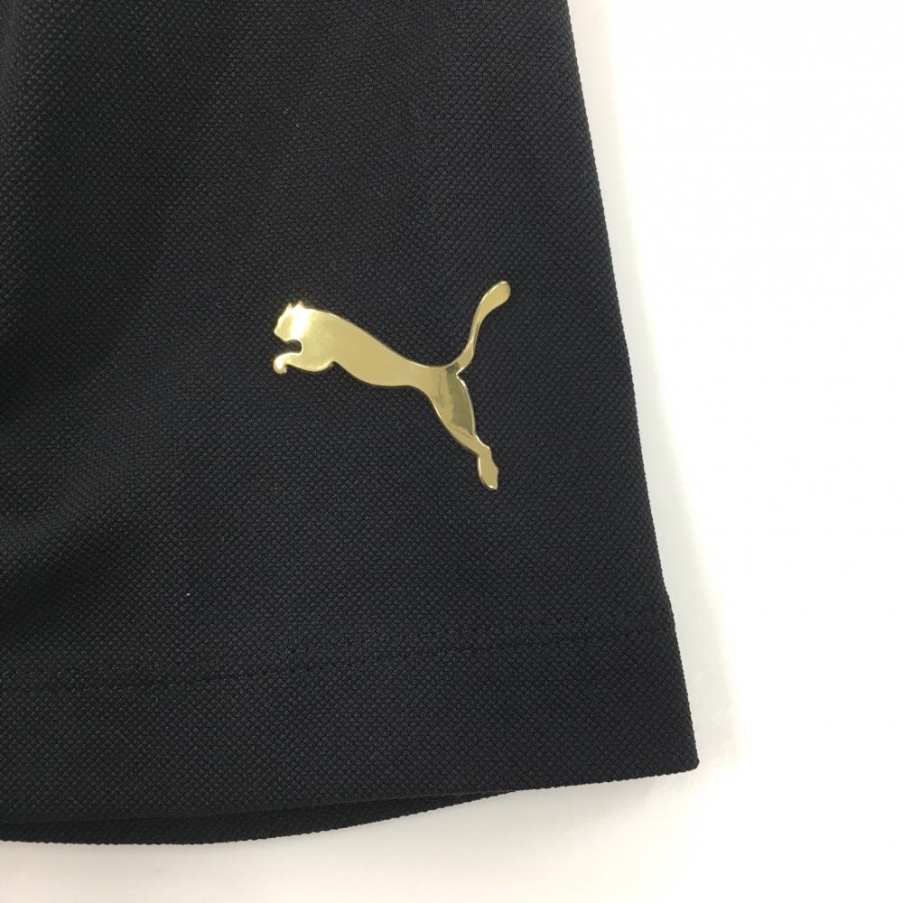 【超美品】プーマ 半袖ポロシャツ 黒 襟裏ロゴ 胸元ワッペン メンズ L ゴルフウェア PUMA