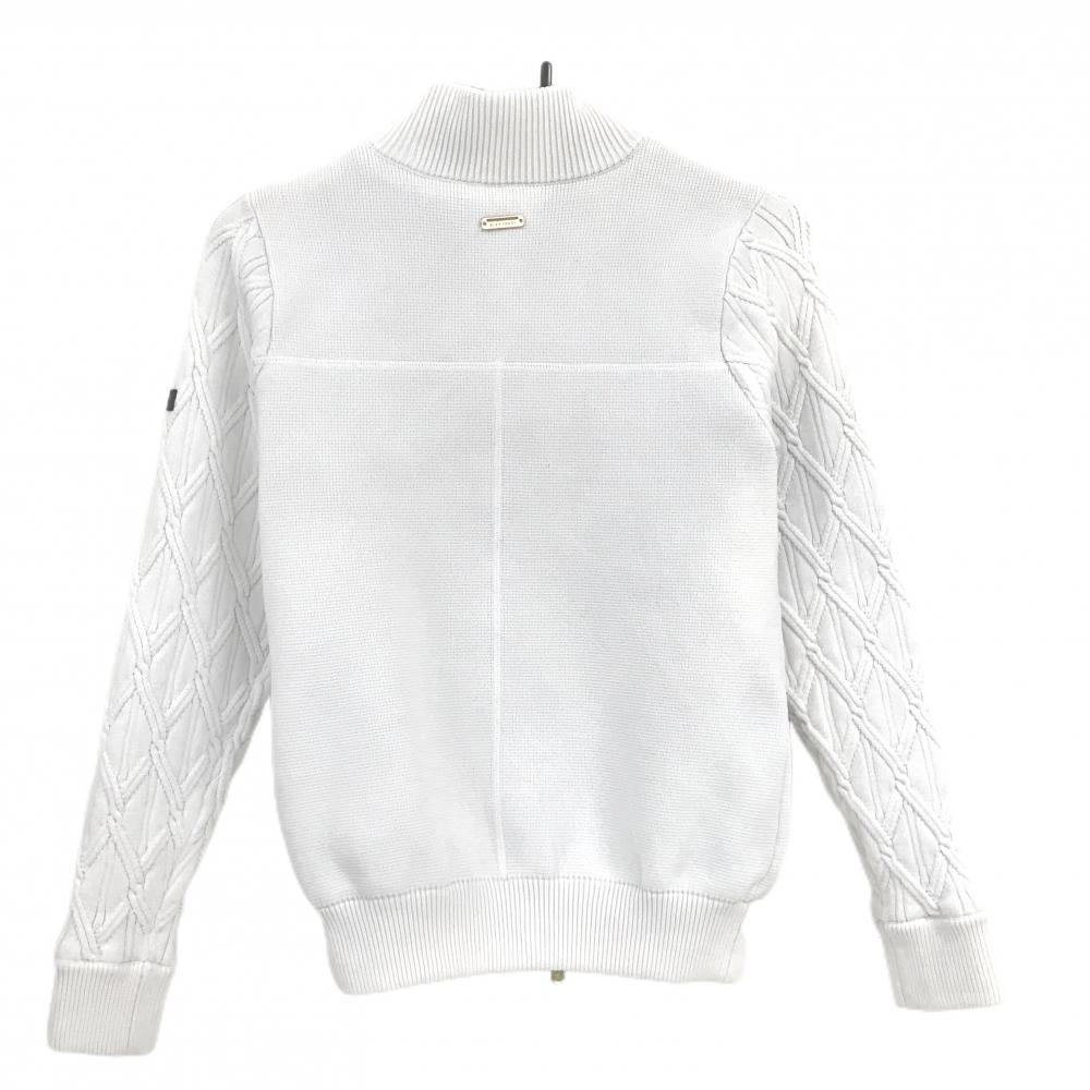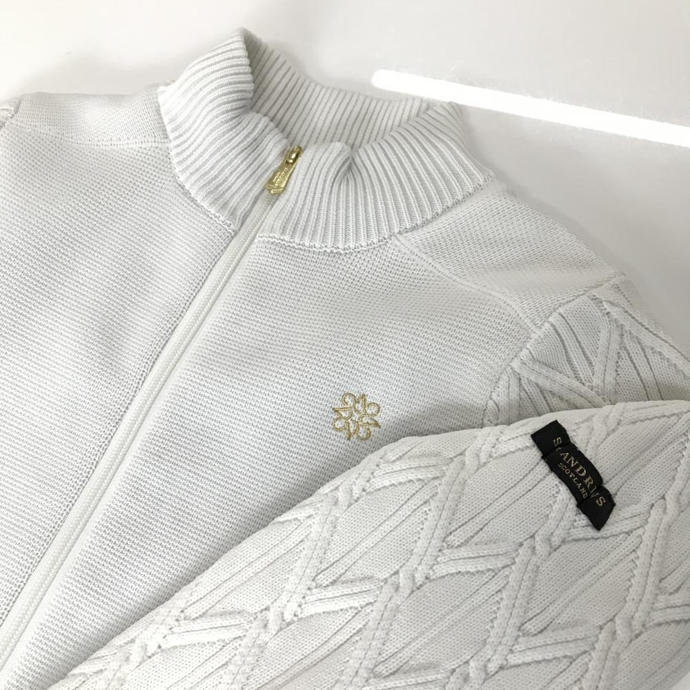 【美品】セントアンドリュース ニットジャケット 白 袖ダイヤ柄編み 裏地付 レディース S ゴルフウェア St ANDREWS