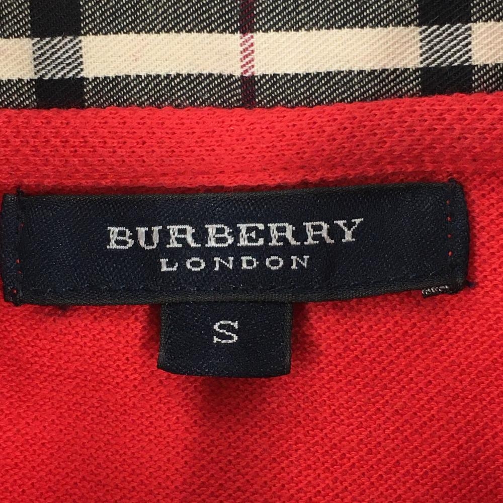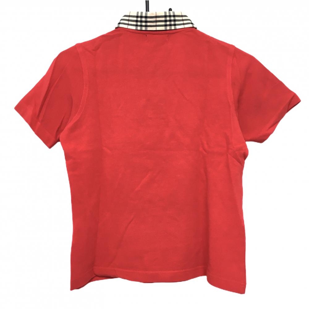 バーバリー 半袖ポロシャツ レッド×ベージュ 襟チェック レディース S ゴルフウェア BURBERRY GOLF