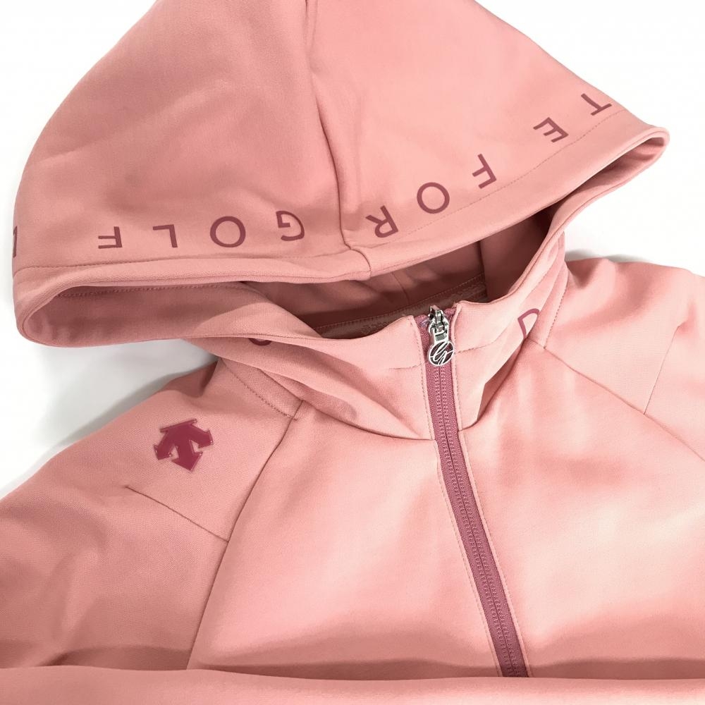 【美品】デサントゴルフ ジップパーカー ピンク フードロゴ ブルゾン 中田英寿 レディース S ゴルフウェア DESCENTE