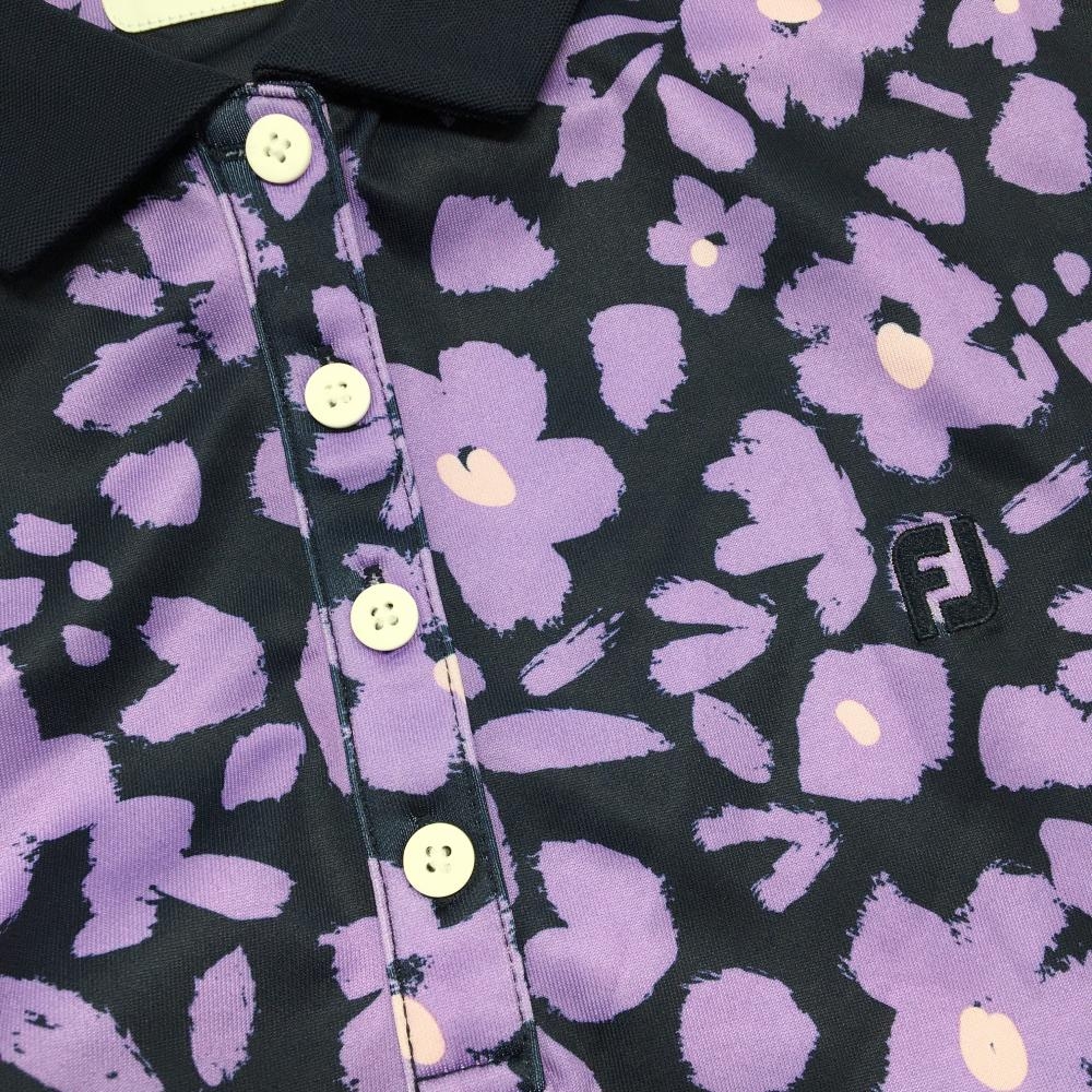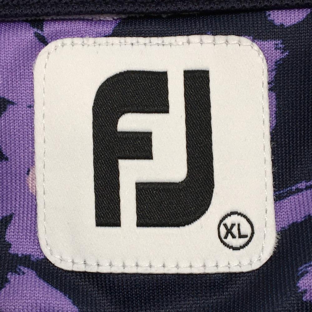【超美品】フットジョイ 半袖ポロシャツ ネイビー×パープル 花柄 ロゴ刺しゅう レディース XL ゴルフウェア FootJoy