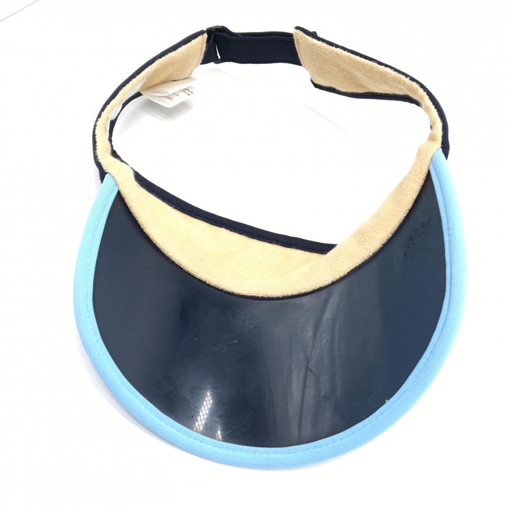 【美品】ヒールクリーク サンバイザー ネイビー×ライトブルー ロゴ刺しゅう 40 ゴルフウェア Heal Creek