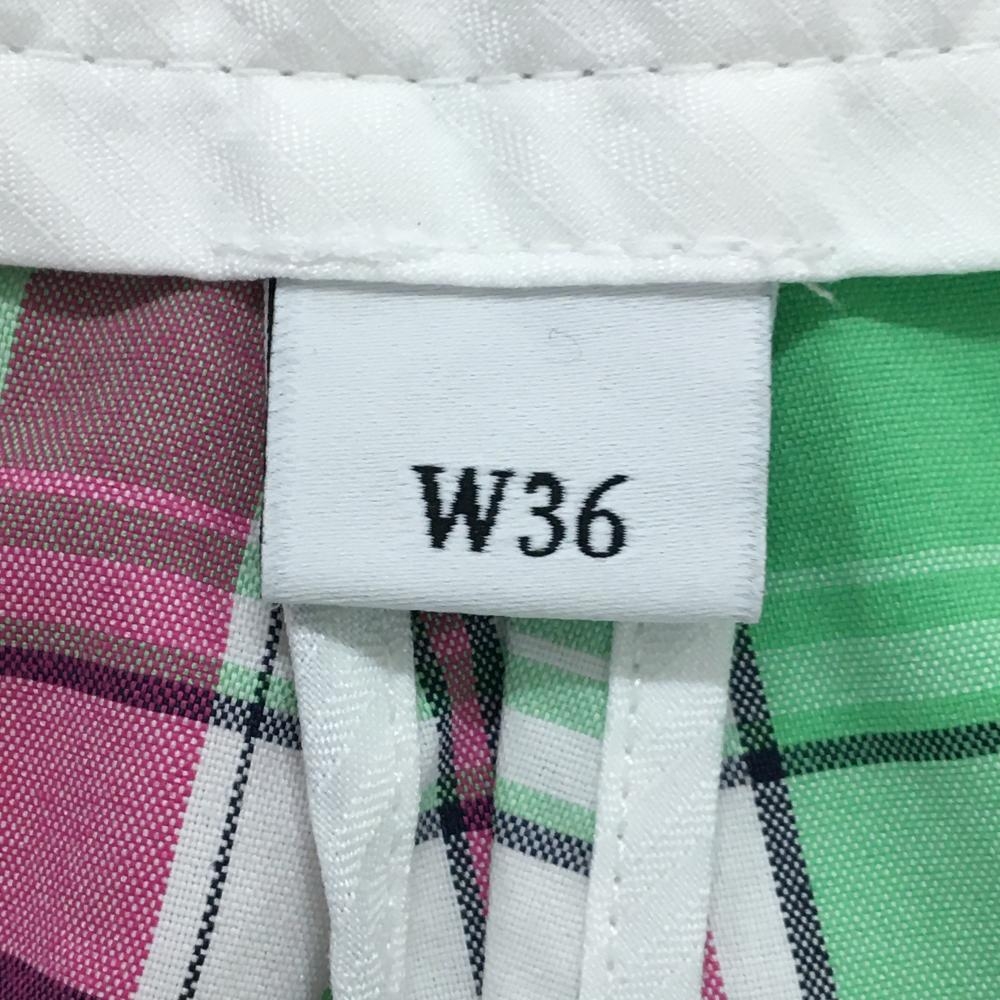 【超美品】フットジョイ ハーフパンツ ライトグリーン×ピンク チェック メンズ W36 ゴルフウェア FootJoy
