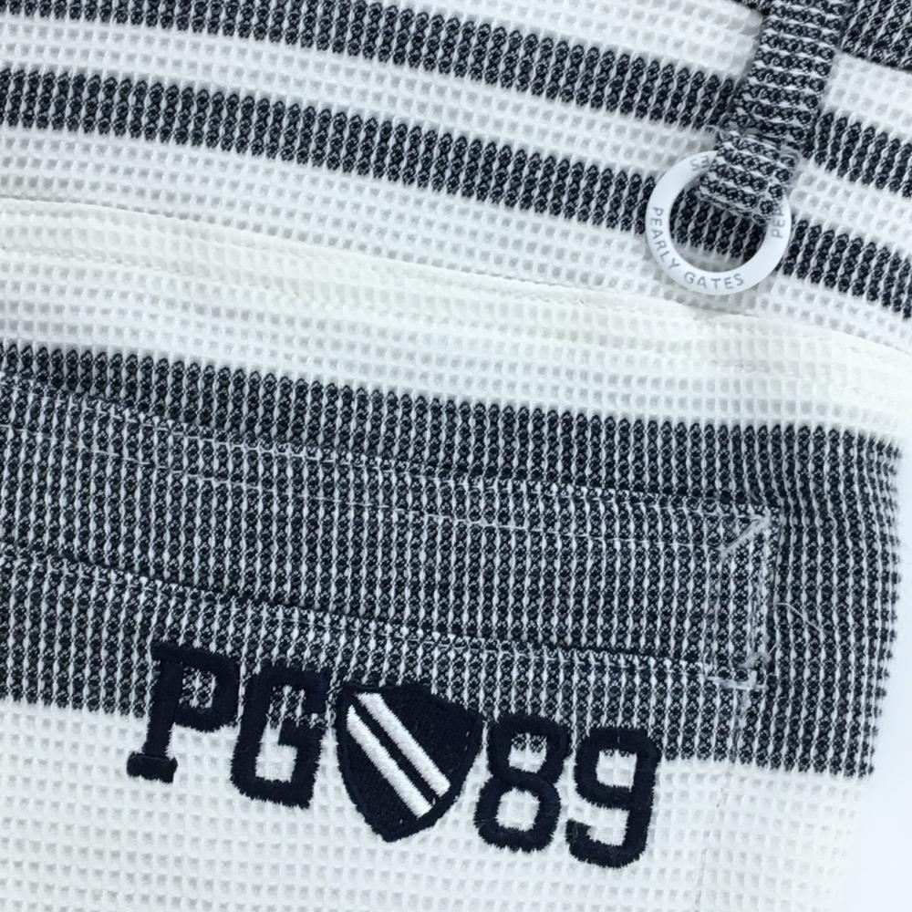 【美品】パーリーゲイツ ハーフパンツ 白×ネイビー系 ボーダー 織生地 ポケット裏ニコちゃん メンズ 6(XL) ゴルフウェア PEARLY GATES