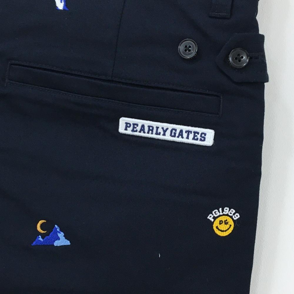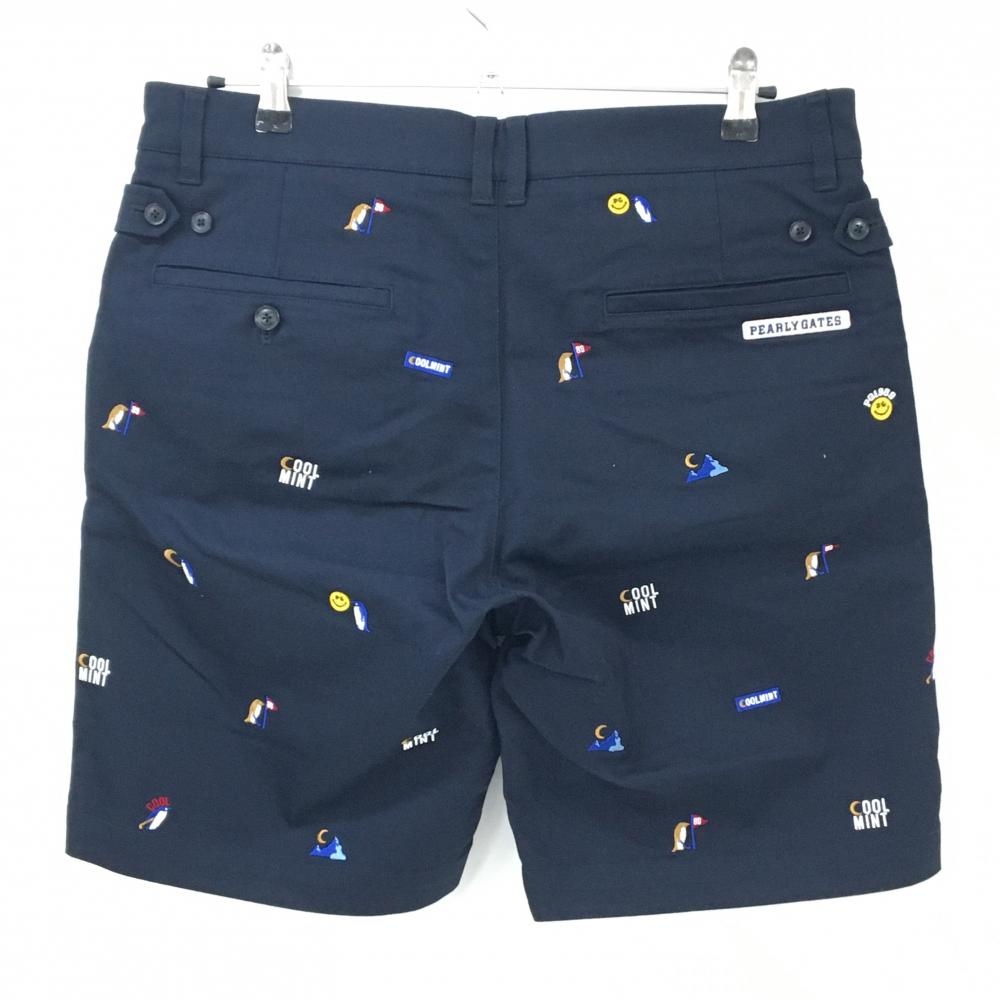 【超美品】パーリーゲイツ ハーフパンツ ネイビー×白×ブラウン系 総柄 ペンギン ニコちゃん メンズ 6(XL) ゴルフウェア PEARLY GATES