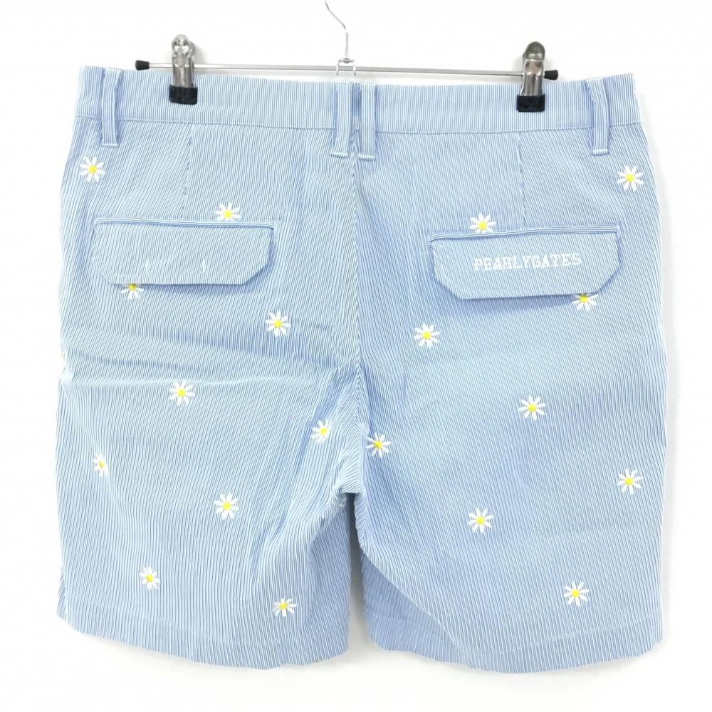 パーリーゲイツ ハーフパンツ 白×ブルー ストライプ 花総柄 ストレッチ メンズ 6(XL) ゴルフウェア PEARLY GATES