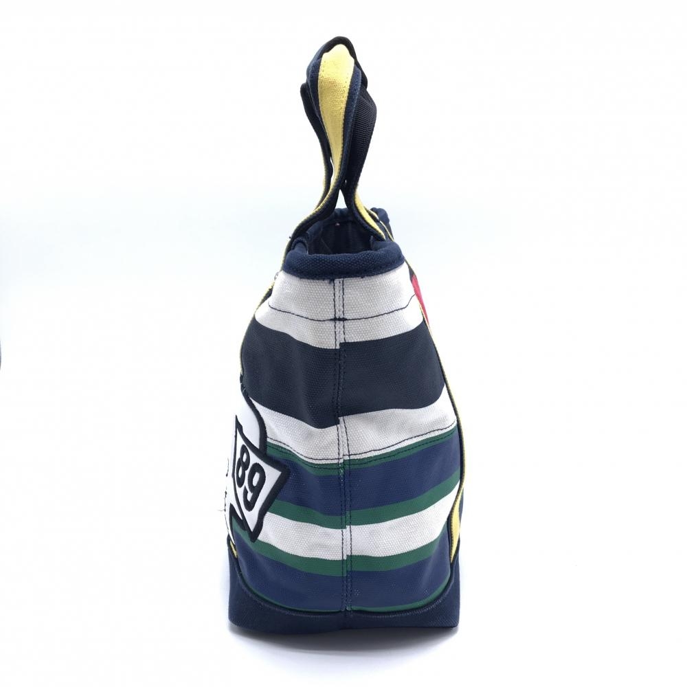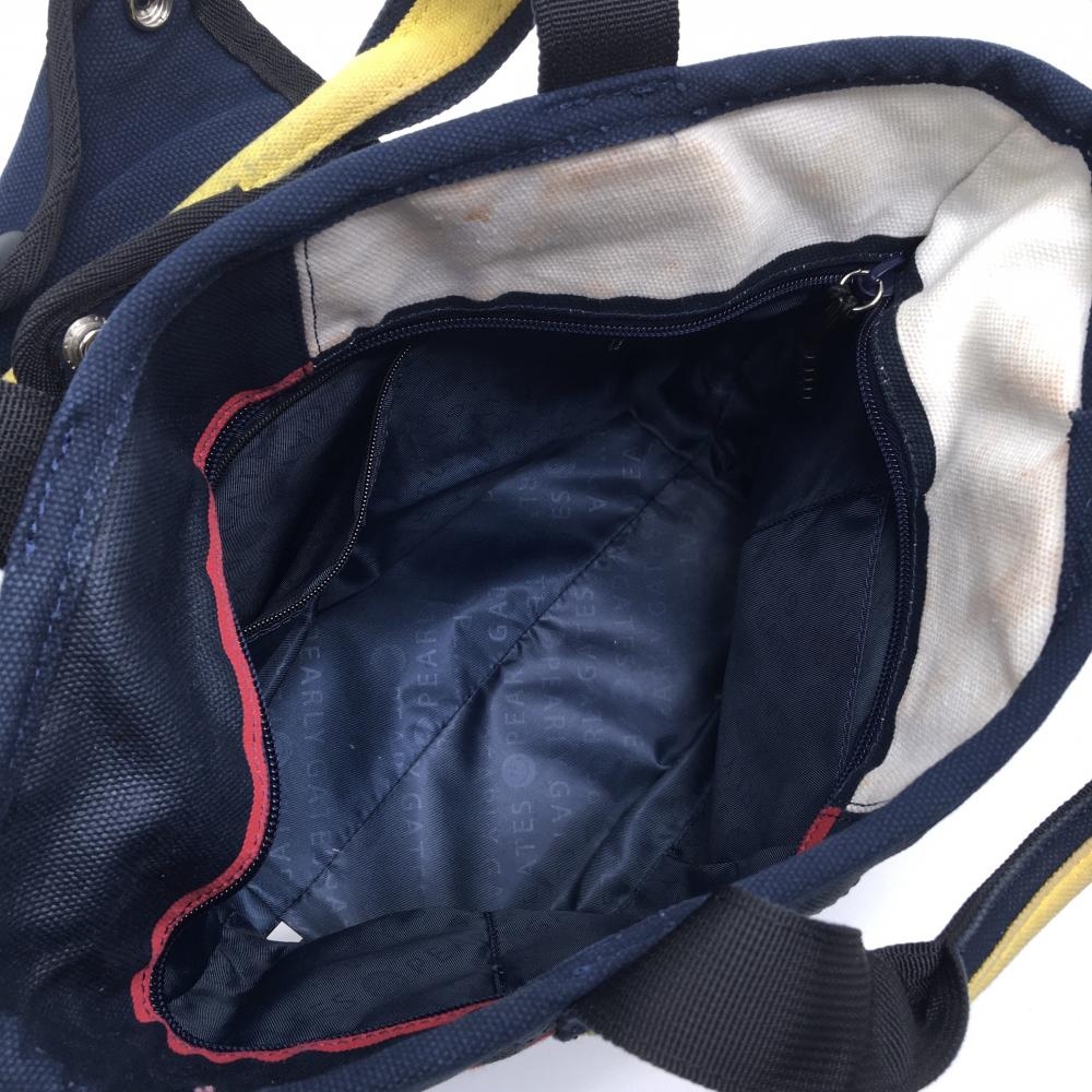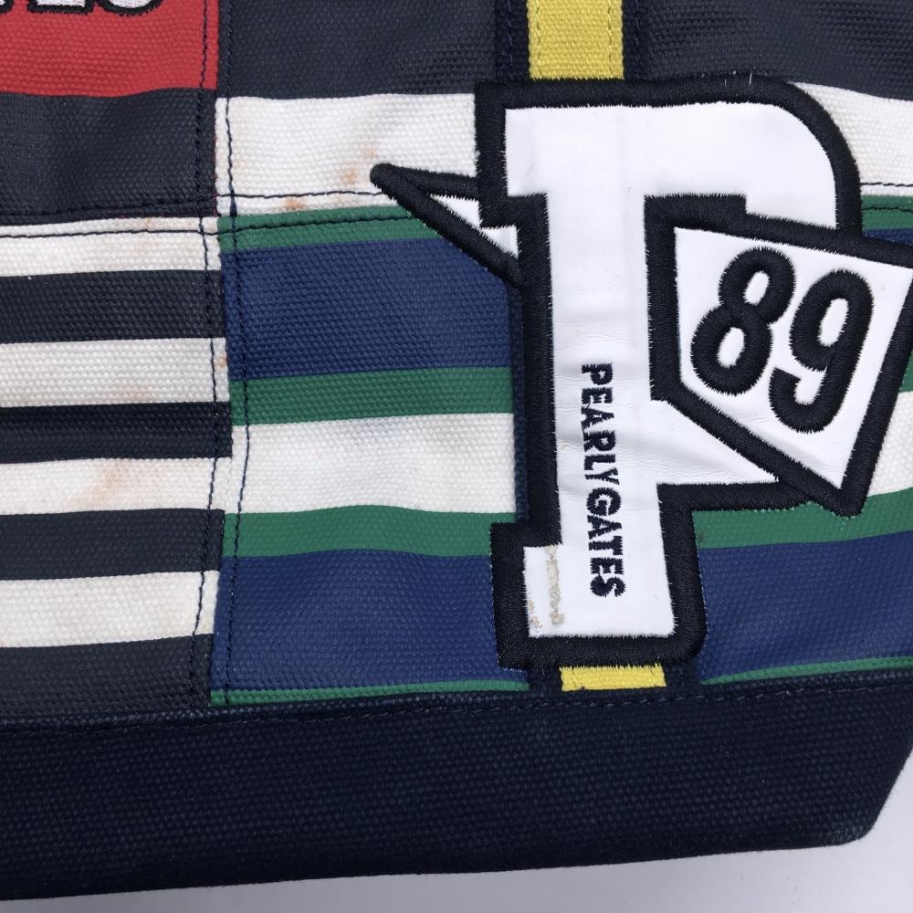 パーリーゲイツ カートバッグ ダークネイビー×白 ランダムボーダー 裏地ニコちゃん スマイル 内ポケット付 ゴルフ PEARLY GATES