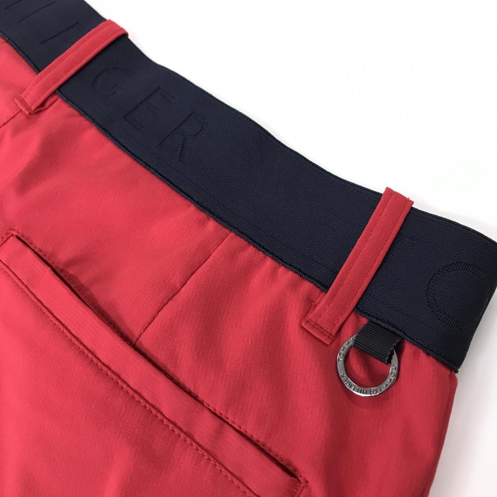 【超美品】トミーヒルフィガーゴルフ ハーフパンツ レッド×ネイビー ロゴ刺しゅう メンズ L ゴルフウェア Tommy Hilfiger Golf