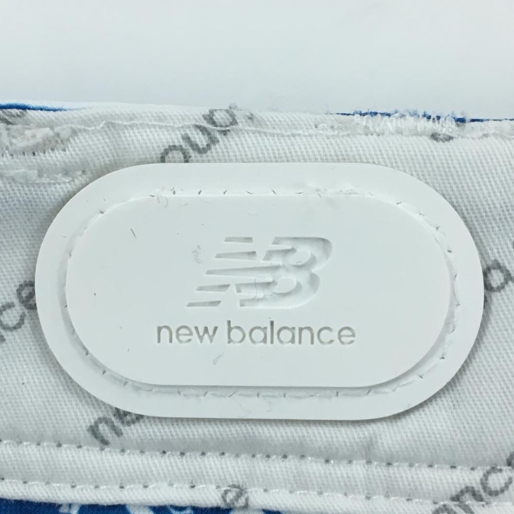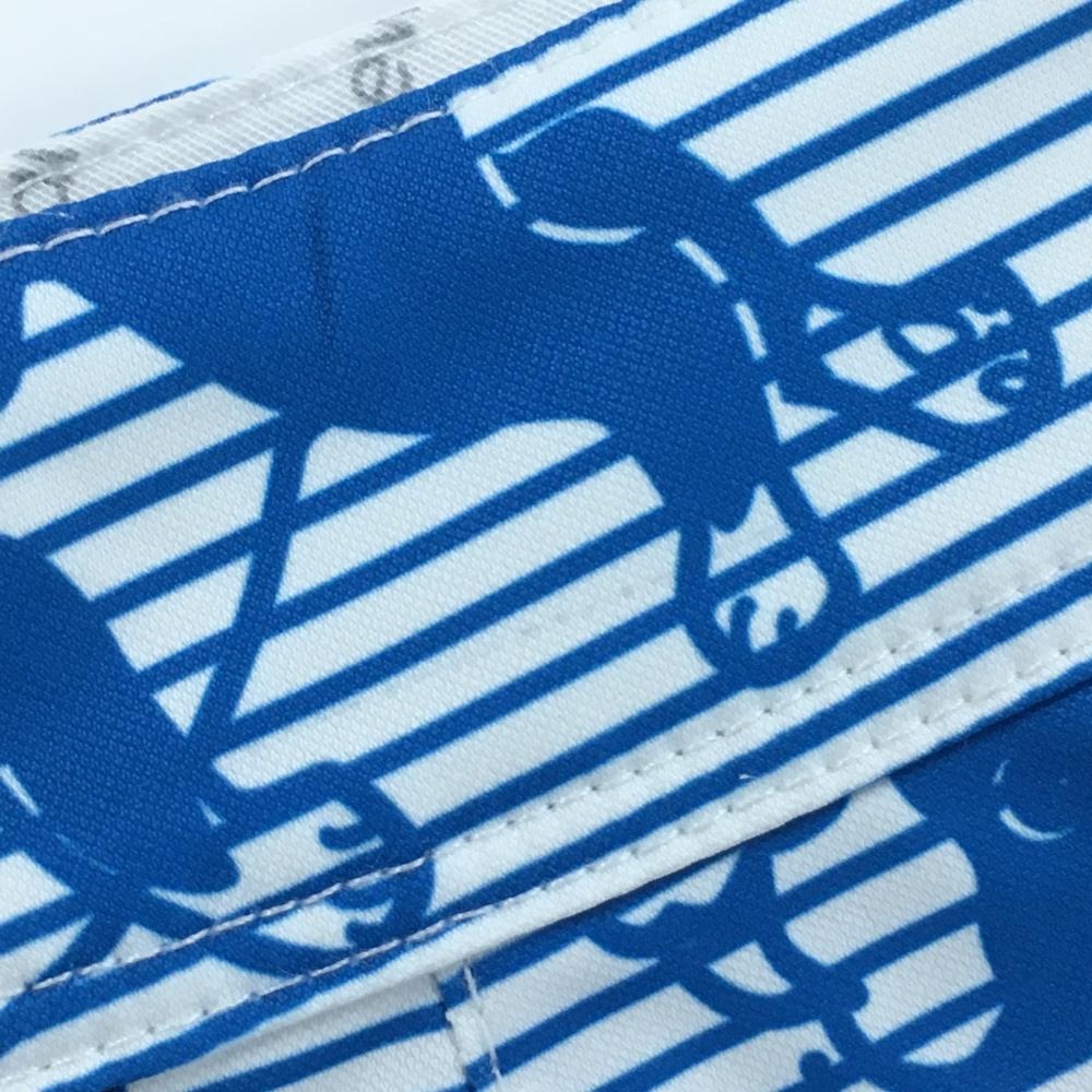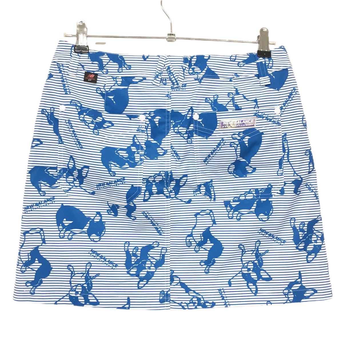 【超美品】ニューバランスゴルフ スカート 白×ブルー イヌ総柄 ボーダー レディース 2(L) ゴルフウェア New Balance