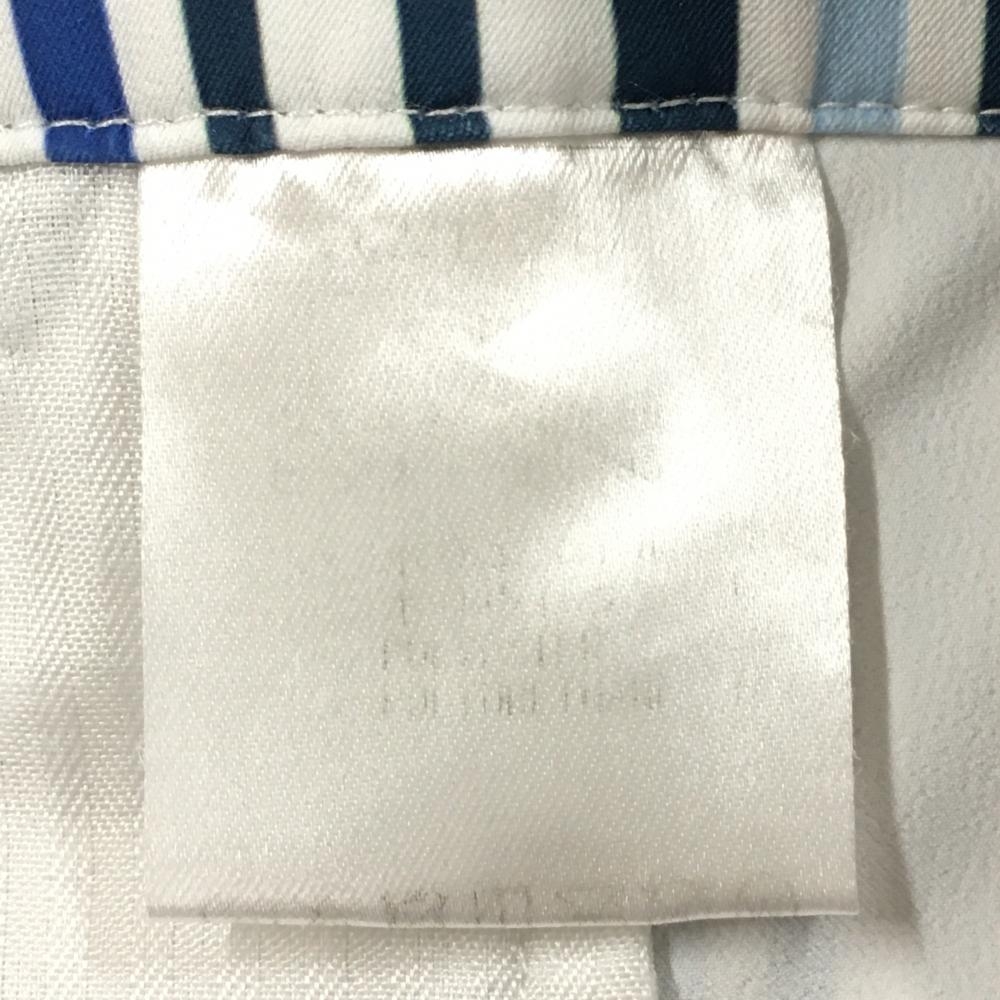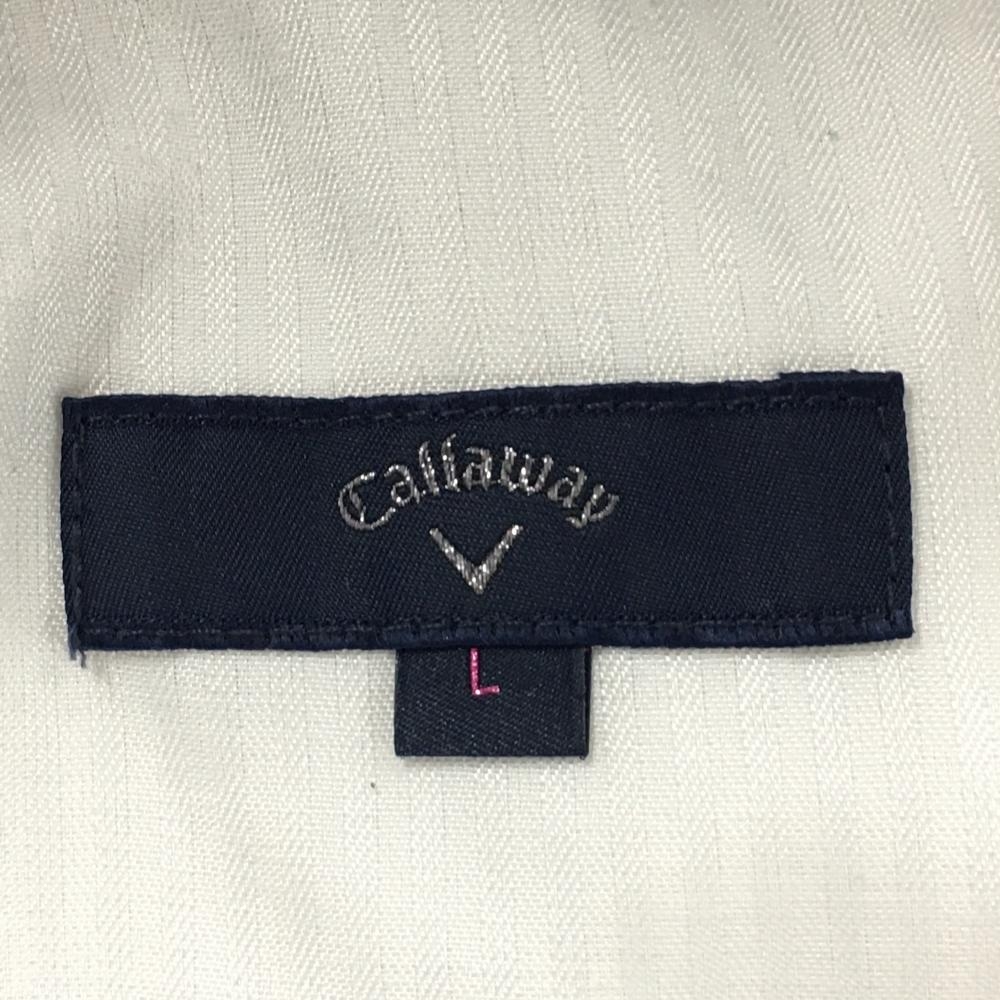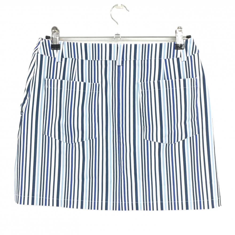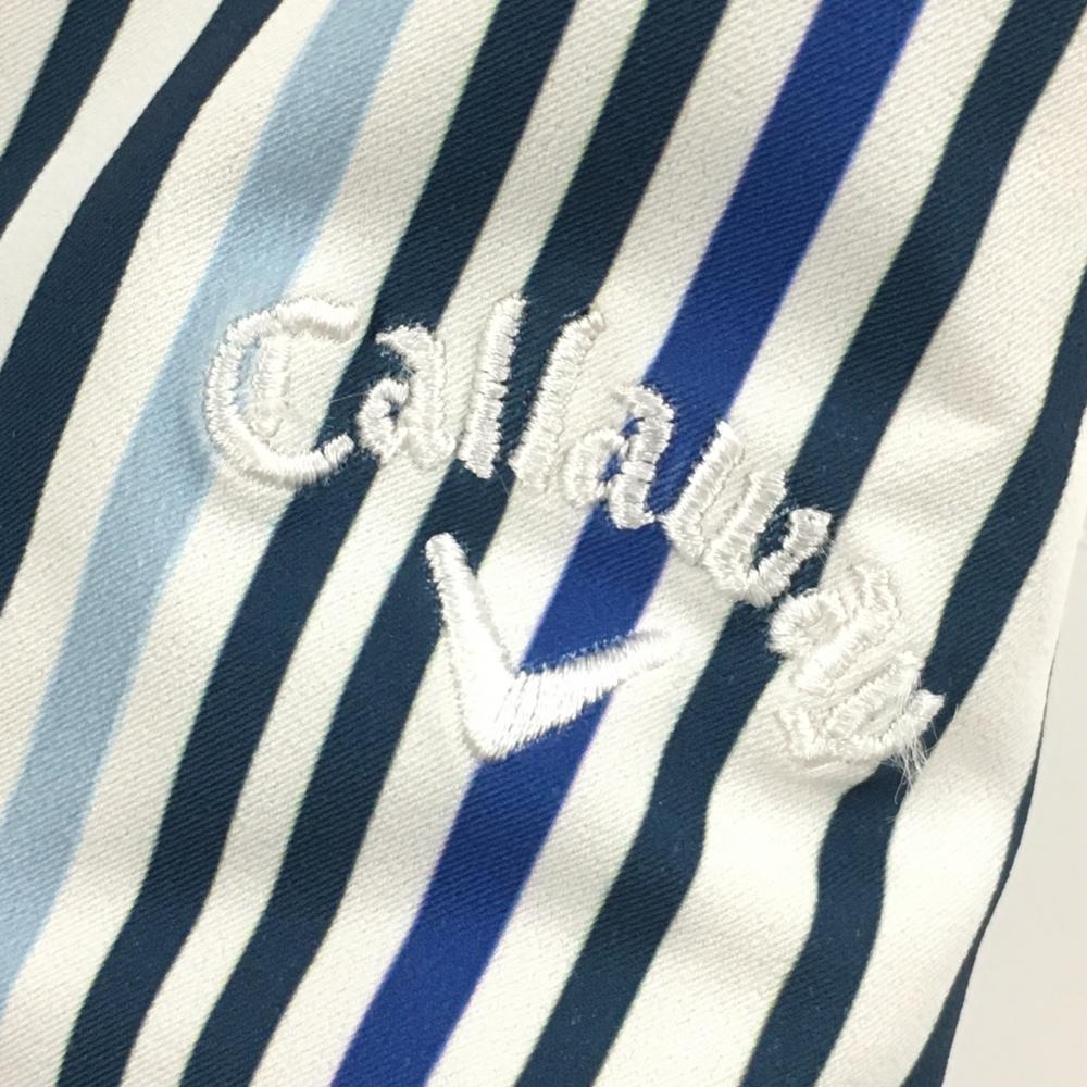 【超美品】キャロウェイ スカート 白×ネイビー ストライプ ロゴボタン レディース L ゴルフウェア Callaway