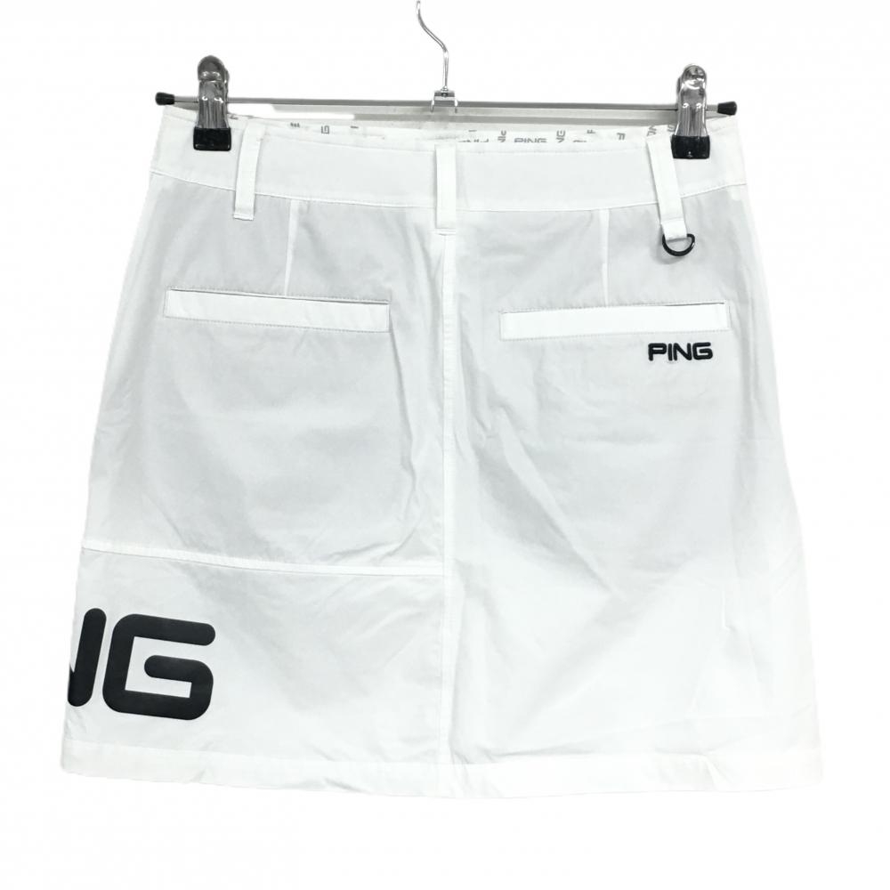 【超美品】ピン スカート 白×黒 ロゴプリント レディース S ゴルフウェア PING