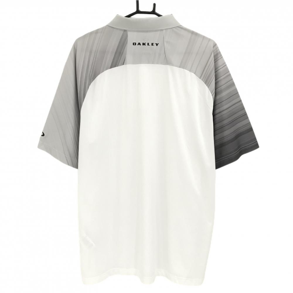 オークリー 半袖ポロシャツ ライトグレー×白 斜めストライプ調 グラデーション メンズ 3XL ゴルフウェア Oakley