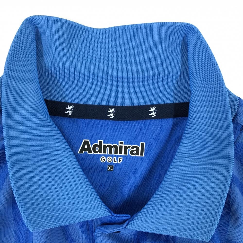【美品】アドミラル 半袖ポロシャツ ブルー 総柄織生地 ロゴ メンズ XL ゴルフウェア Admiral