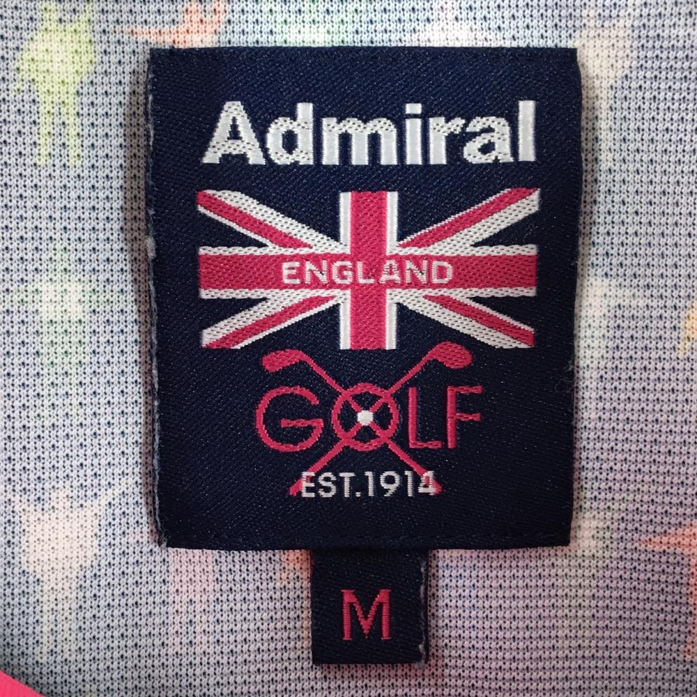 【美品】アドミラル 半袖ポロシャツ ネイビー×マルチカラー 総柄 レディース M ゴルフウェア Admiral