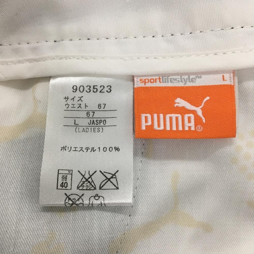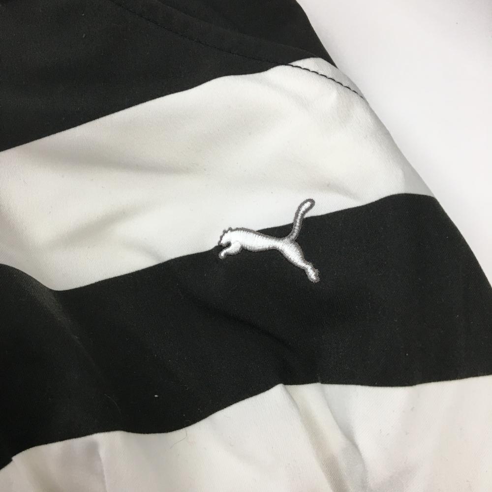 【超美品】プーマ ショートパンツ 黒×白 ボーダー ロゴ刺しゅう レディース L ゴルフウェア PUMA