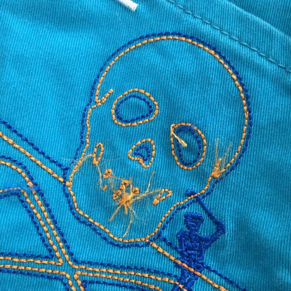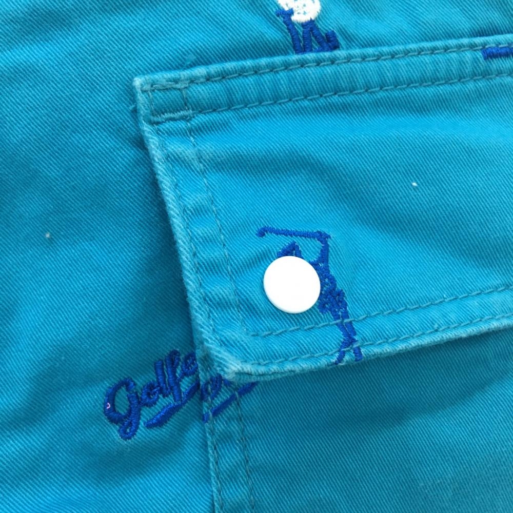 マークアンドロナ カーゴパンツ ライトブルー×白 総柄刺しゅう ゴルファースカル レディース M ゴルフウェア MARK&LONA