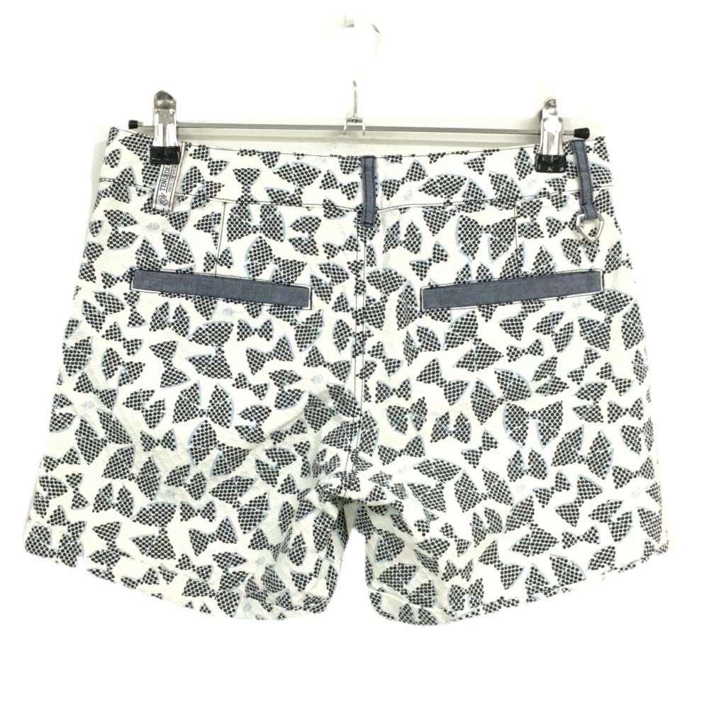 【美品】ゾーイ ショートパンツ 白×ネイビー リボン柄 ドット レディース 38(M) ゴルフウェア ZOY