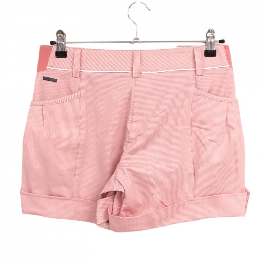 プーマ ショートパンツ サーモンピンク×白 ストライプ ロゴ刺しゅう レディース M ゴルフウェア PUMA